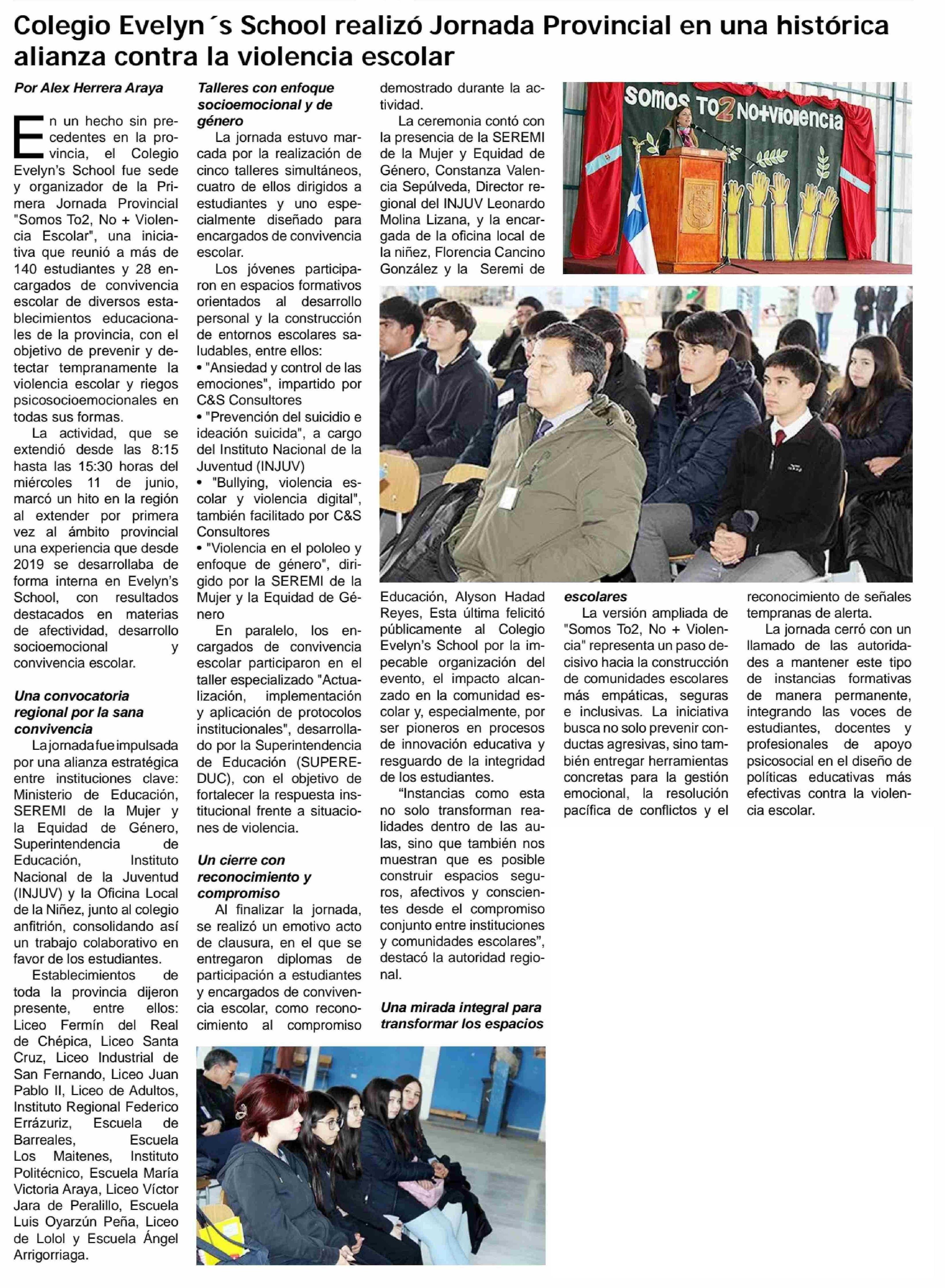 Colegio Evelyn' s School realizó Jornada Provincial en una histórica alianza contra la violencia escolar