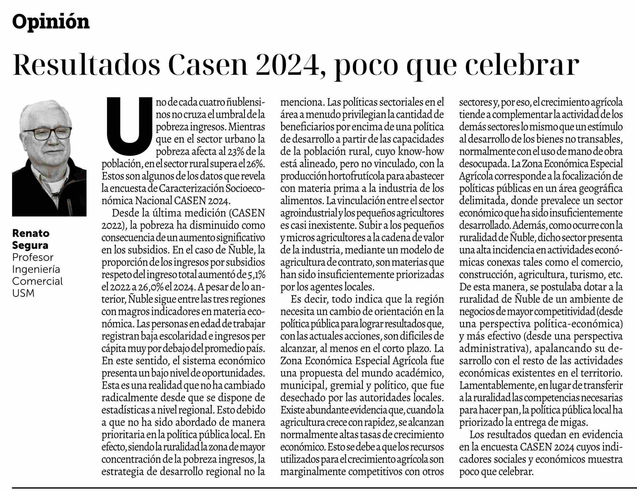Columnas de Opinión: Resultados Casen 2024, poco que celebrar