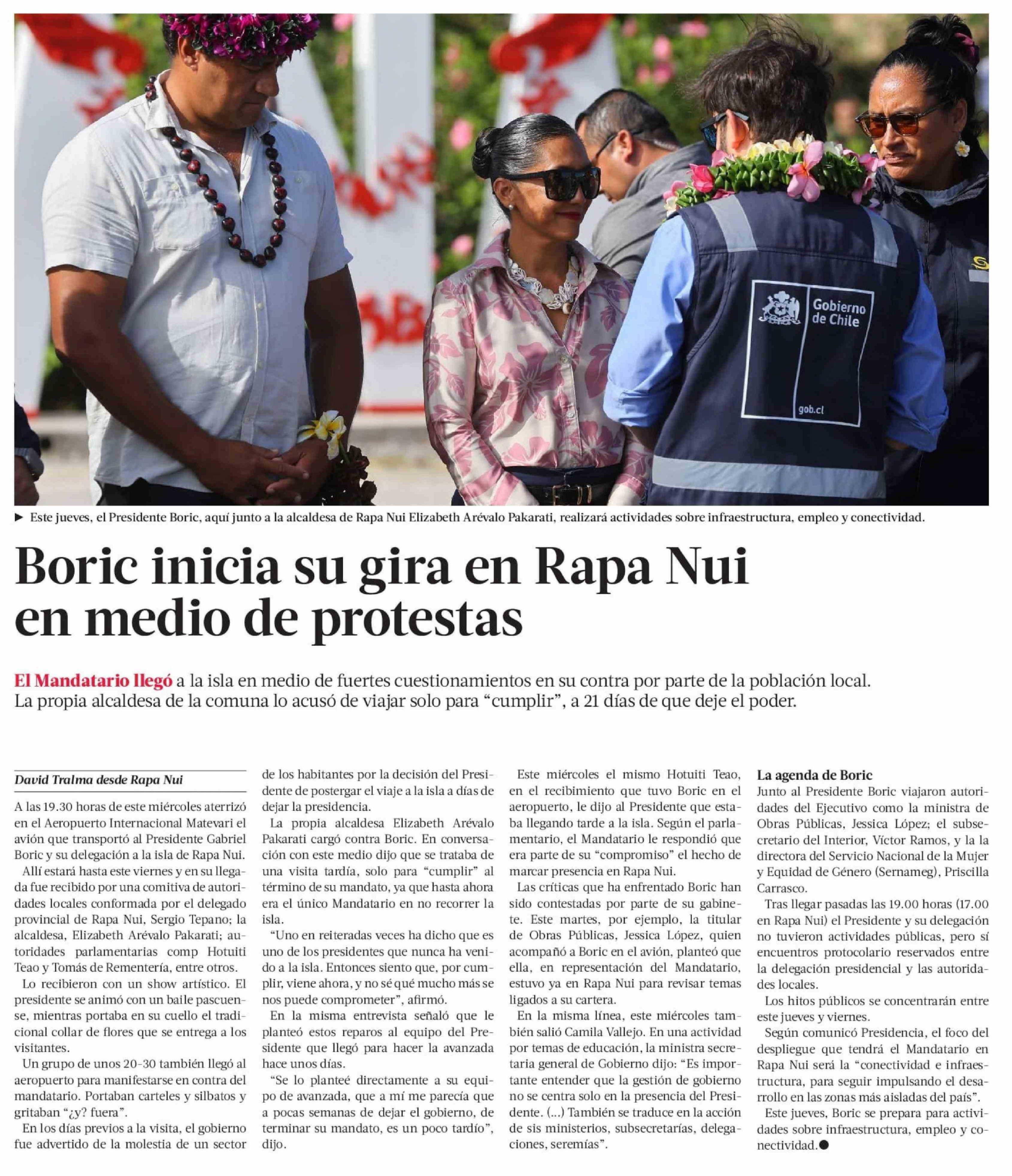 Boric inicia su gira en Rapa Nui en medio de protestas