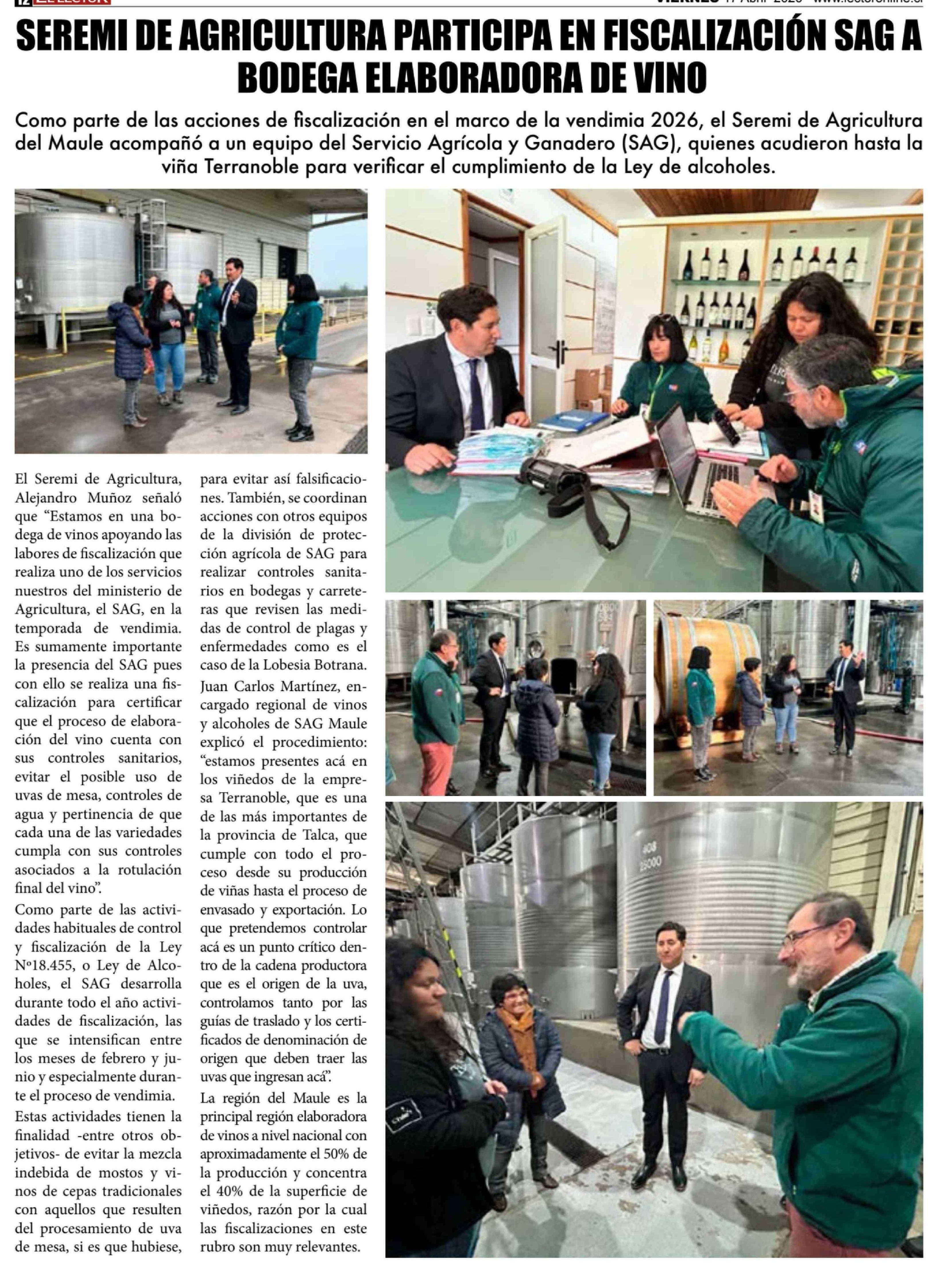 SEREMI DE AGRICULTURA PARTICIPA EN FISCALIZACIÓN SAG A BODEGA ELABORADORA DE VINO