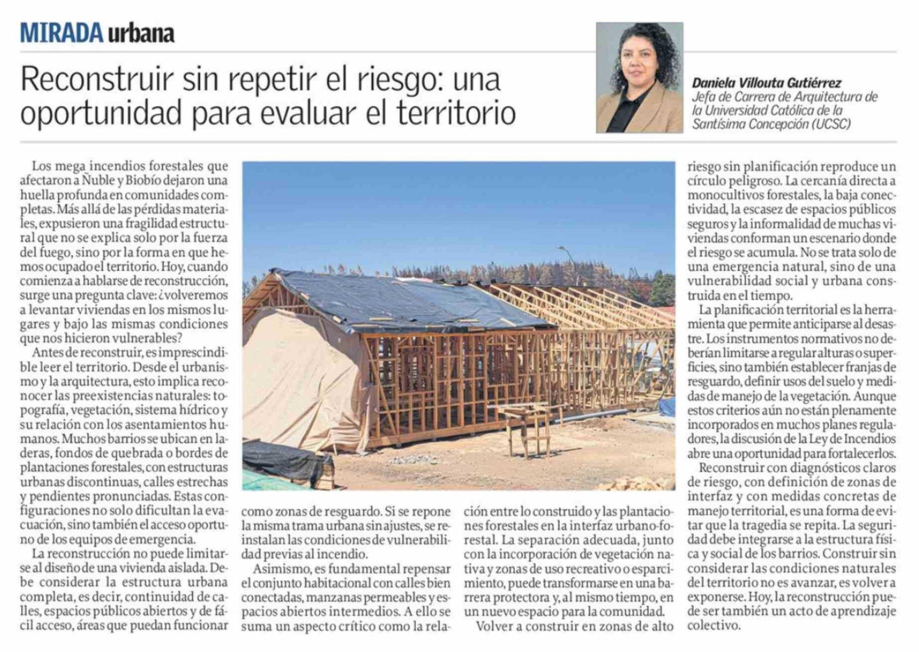 Columnas de Opinión: Reconstruir sin repetir el riesgo: una oportunidad para evaluar el territorio