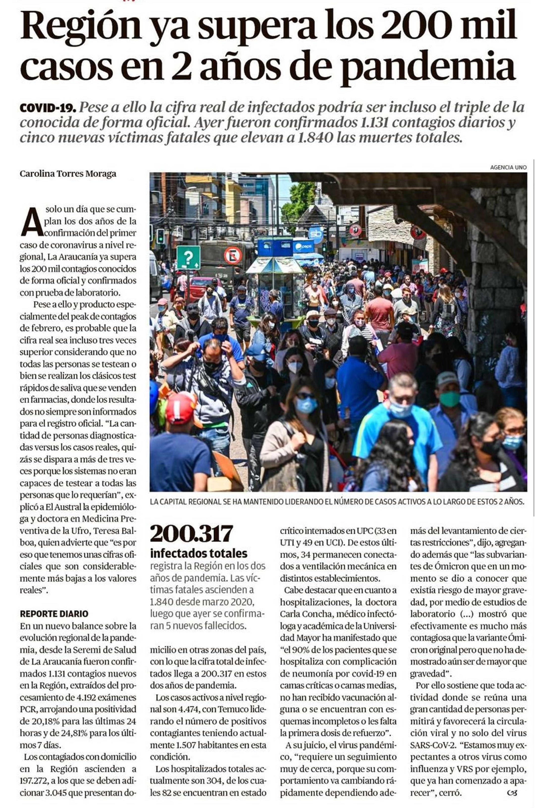 Región ya supera los 200 mil casos en 2 años de pandemia