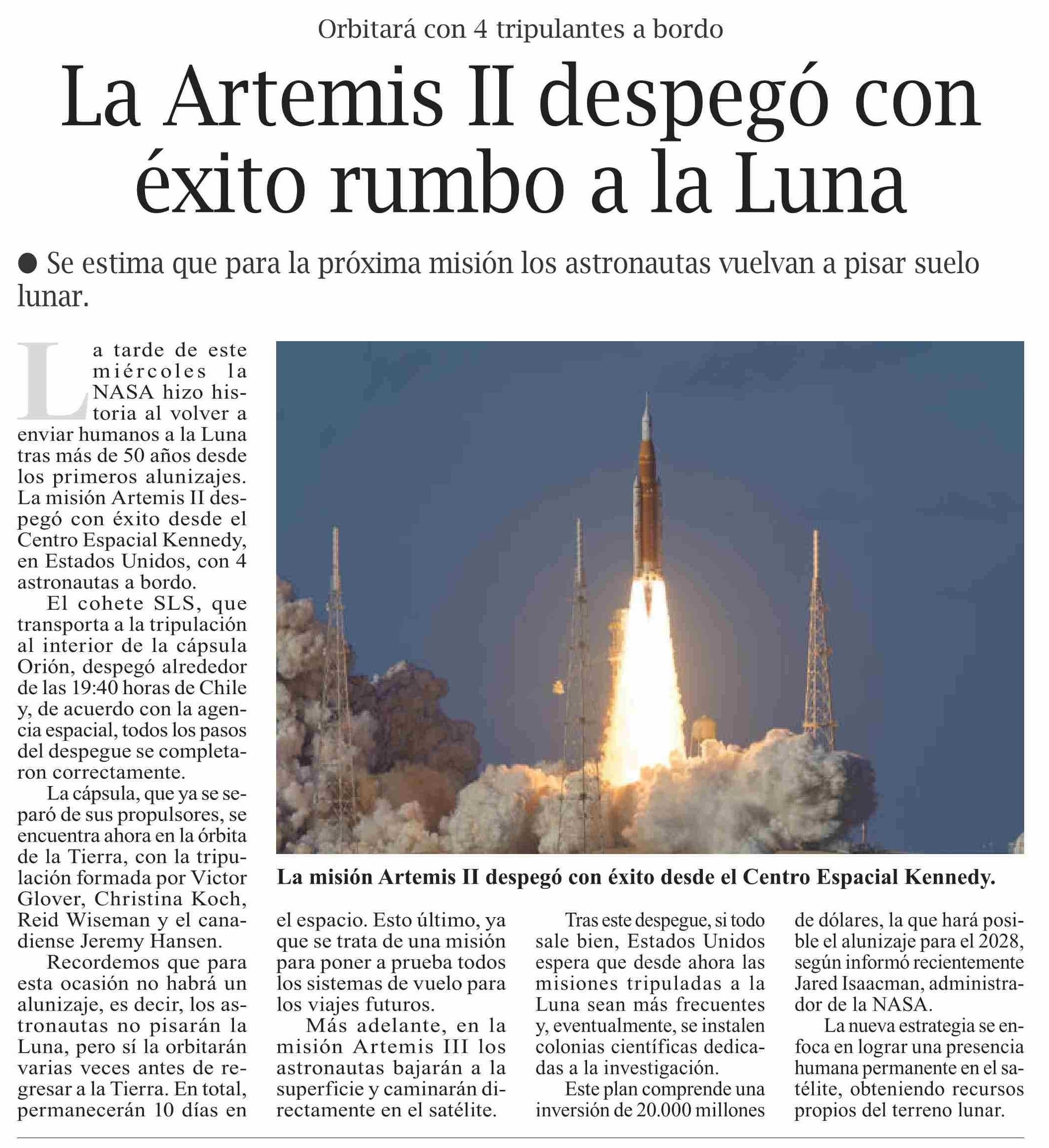 La Artemis II despegó con éxito rumbo a la Luna