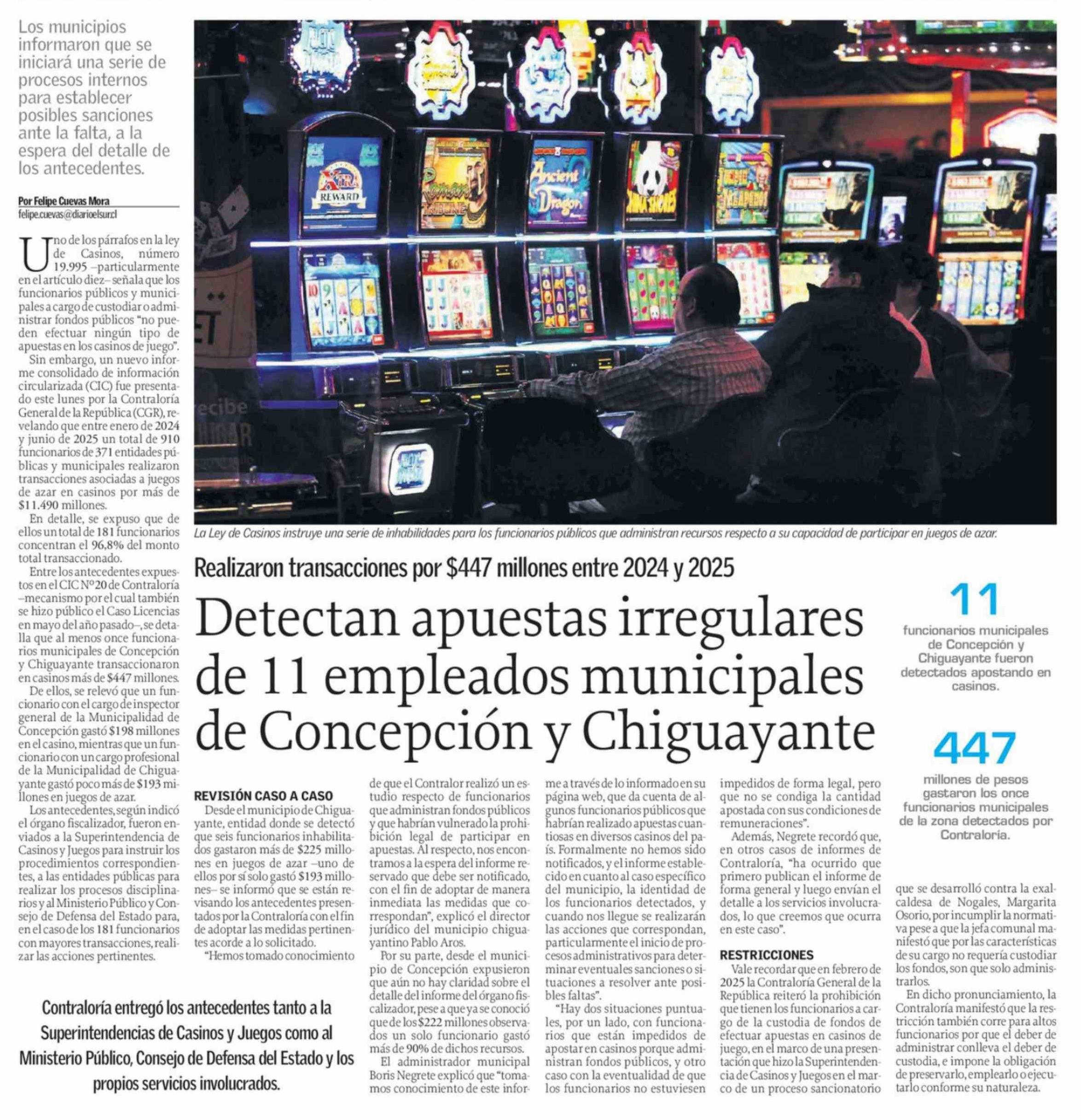Detectan apuestas irregulares de 11 empleados municipales de Concepción y Chiguayante
