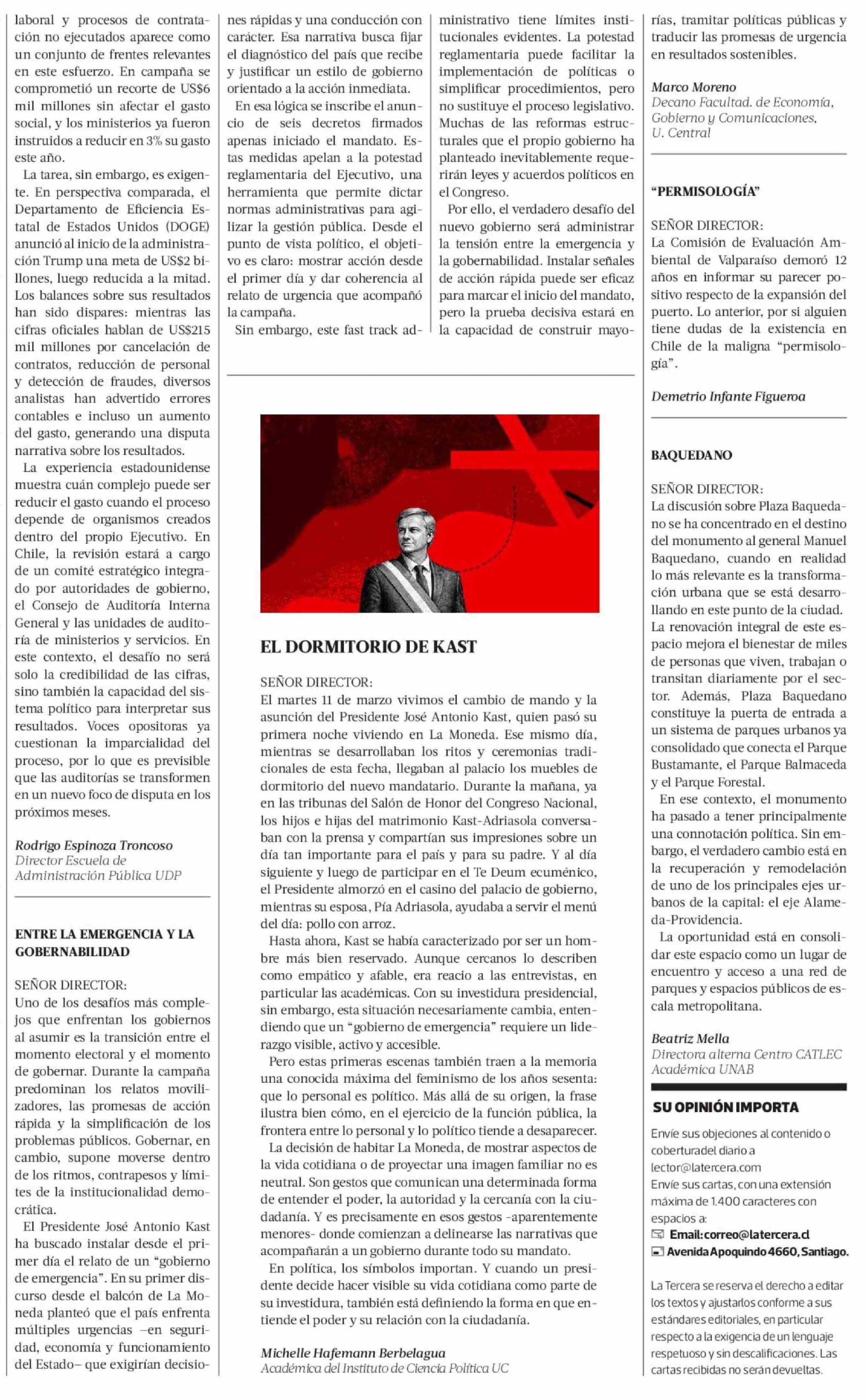 Cartas: ENTRE LA EMERGENCIA Y LA GOBERNABILIDAD