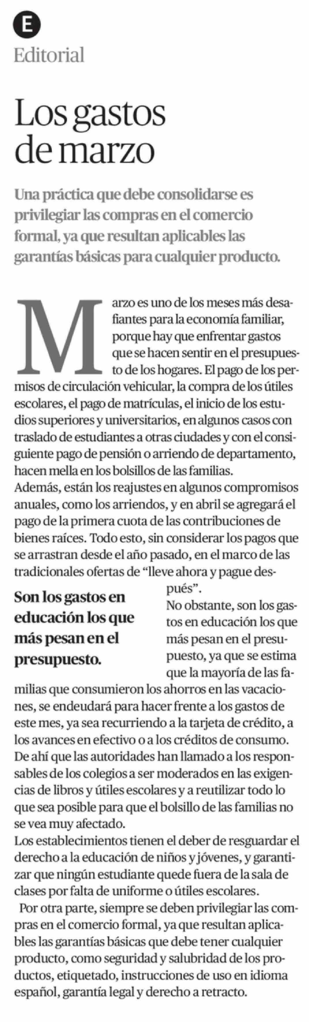Editorial: Los gastos de marzo