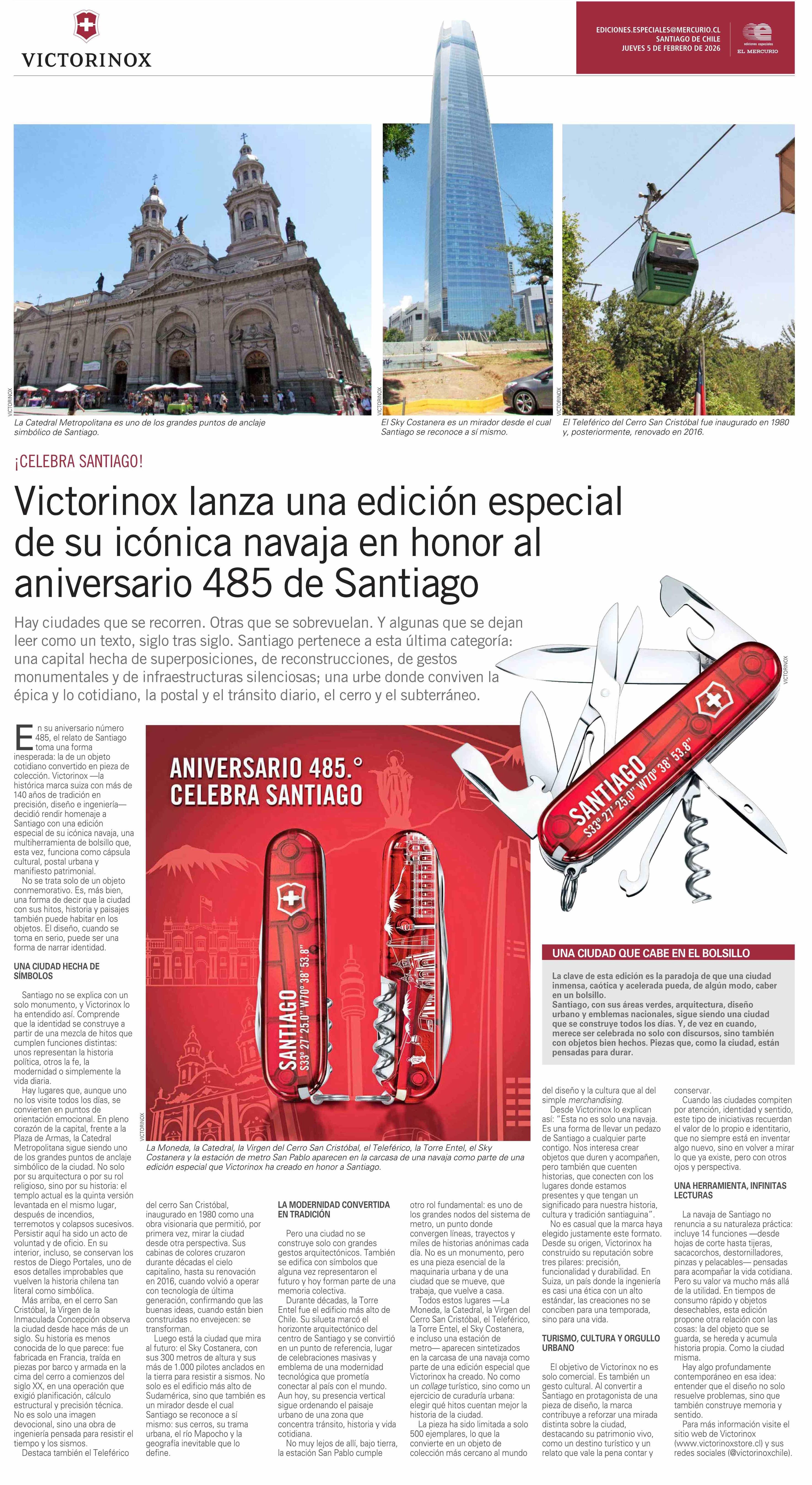 Victorinox lanza una edición especial de su icónica navaja en honor al aniversario 485 de Santiago