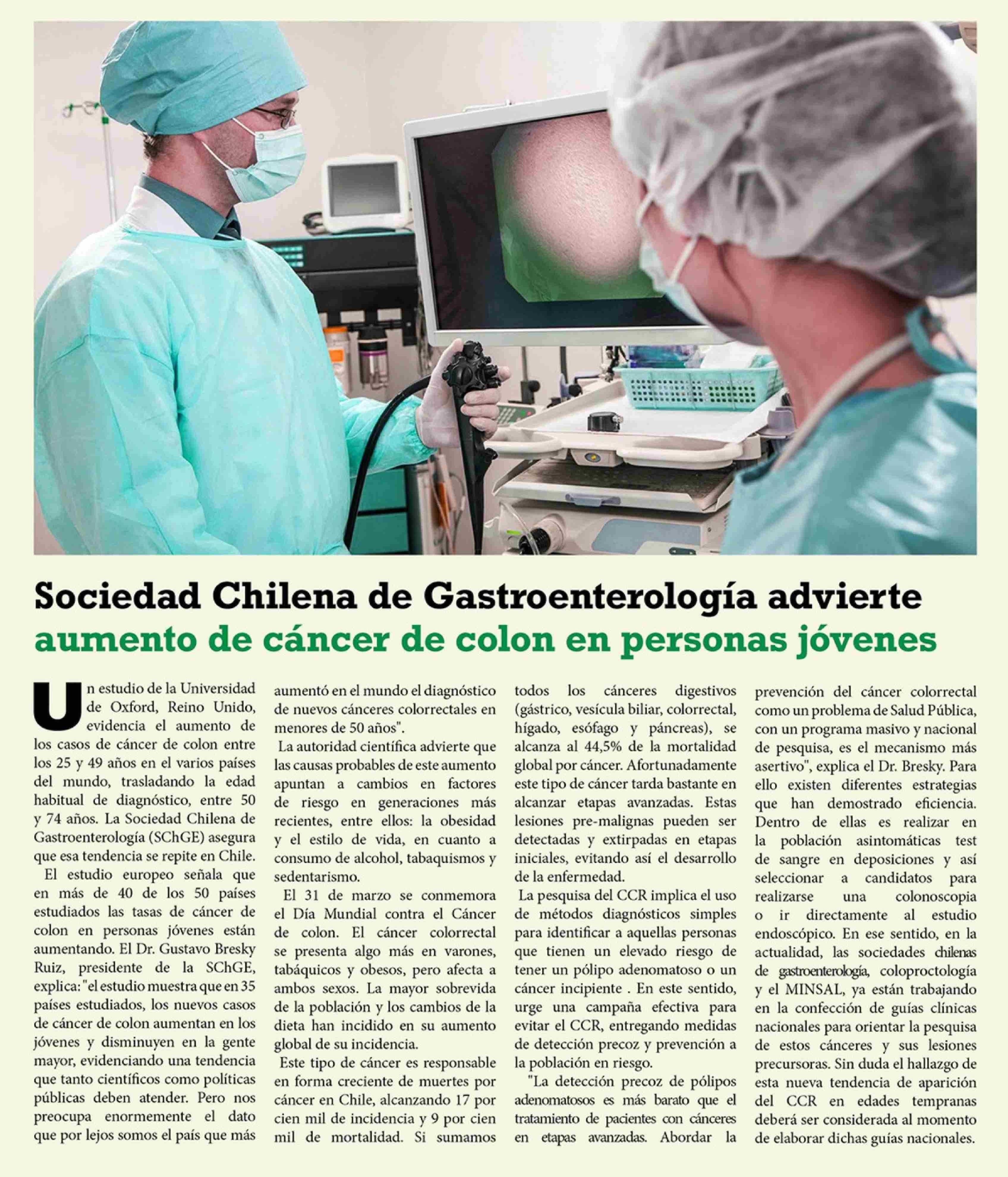 Título: Sociedad Chilena de Gastroenterología advierte aumento de cáncer de colon en personas jóvenes