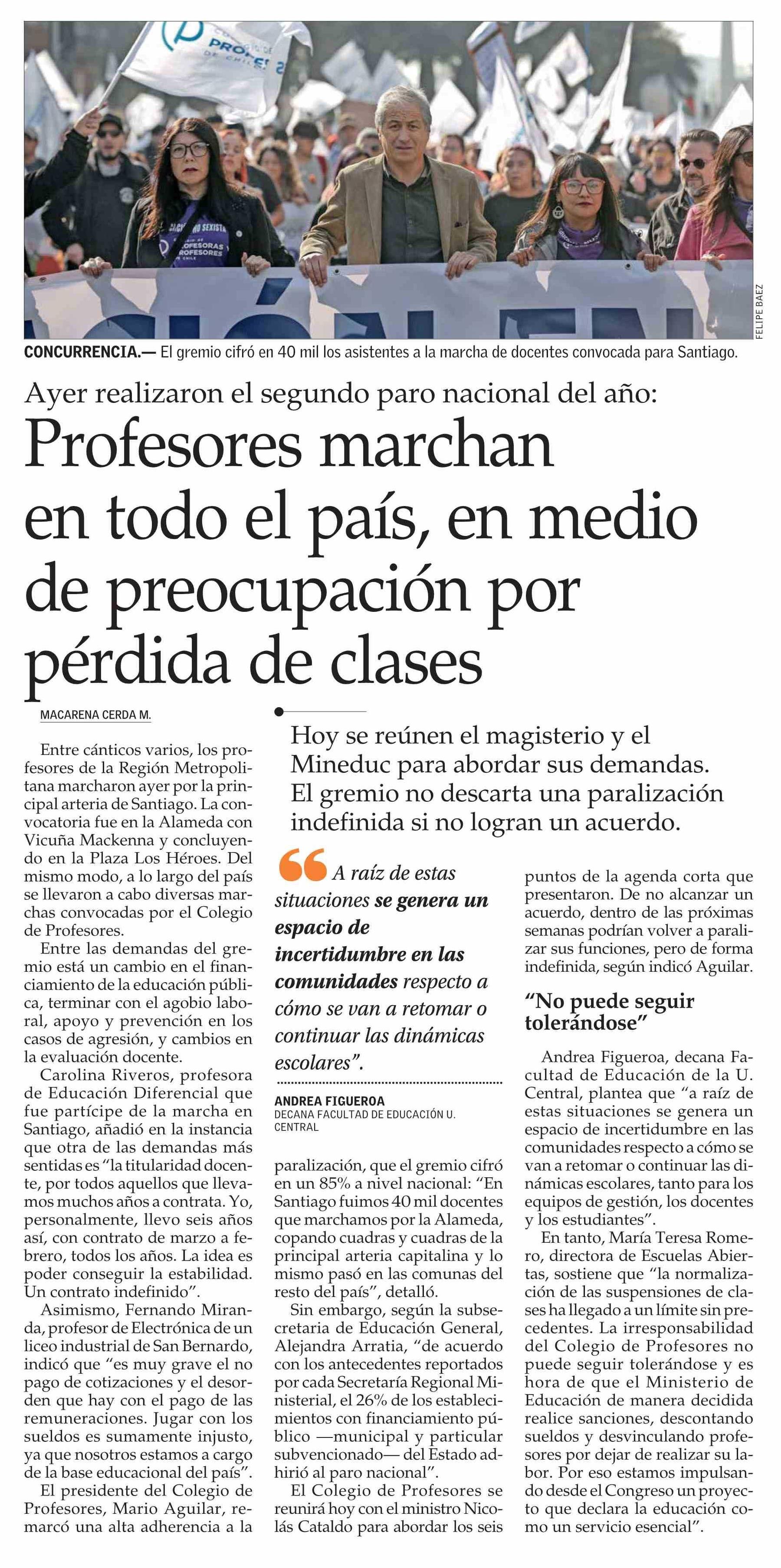 Profesores marchan en todo el país, en medio de preocupación por pérdida de clases