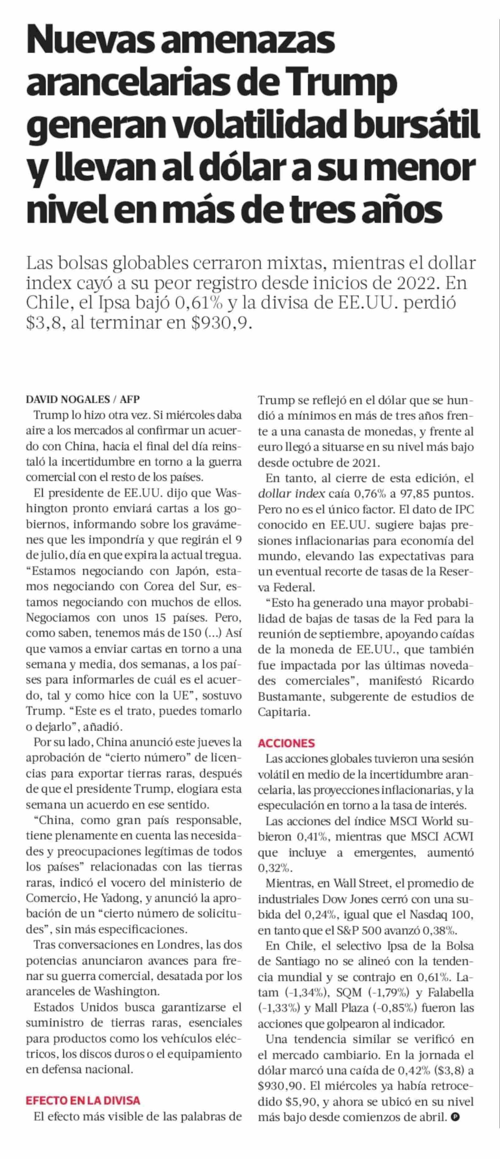Nuevas amenazas arancelarias de Trump generan volatilidad bursátil y llevan al dólar a su menor nivel en más de tres años