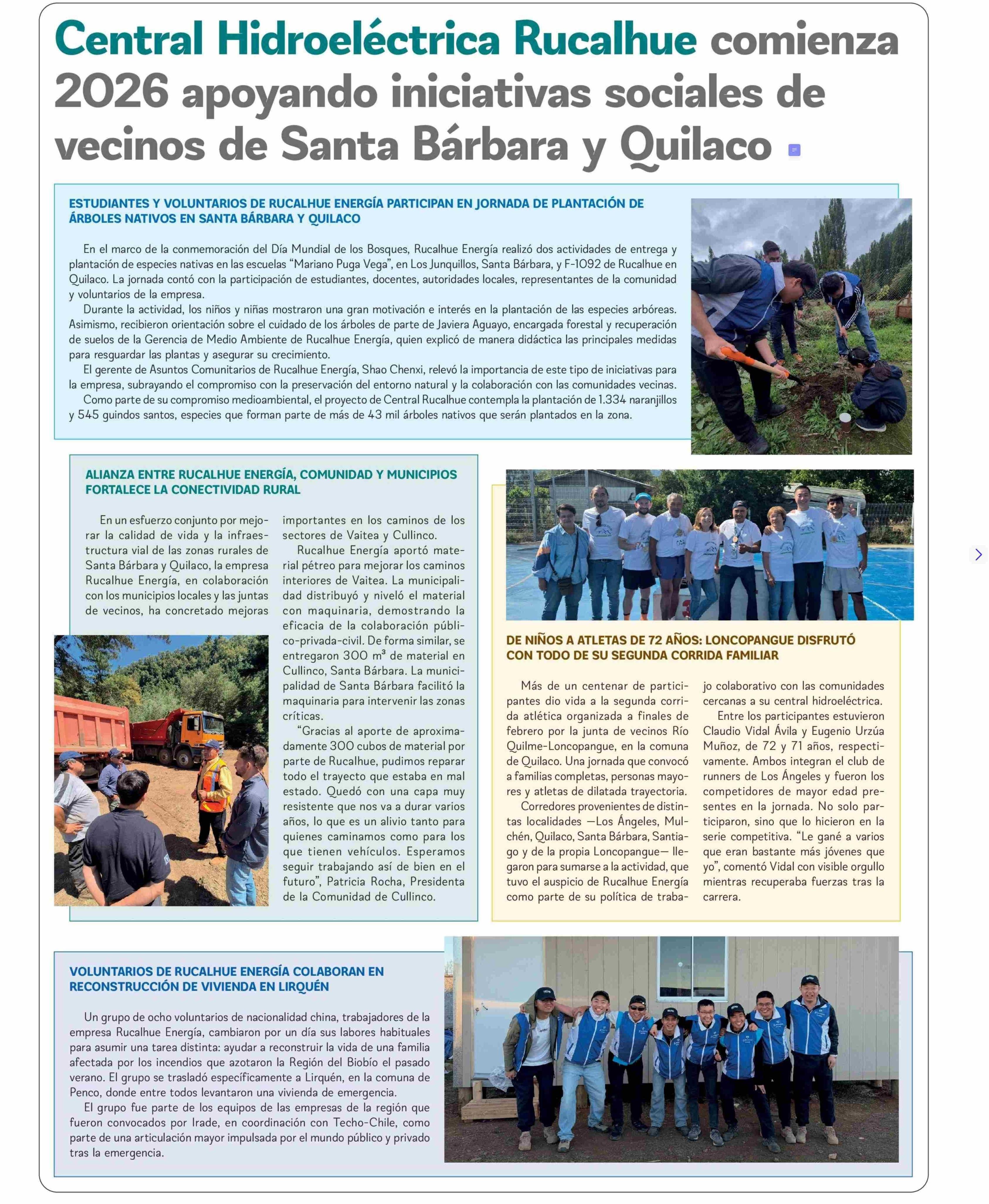 Central Hidroeléctrica Rucalhue comienza 2026 apoyando iniciativas sociales de vecinos de Santa Bárbara y Ouilaco »