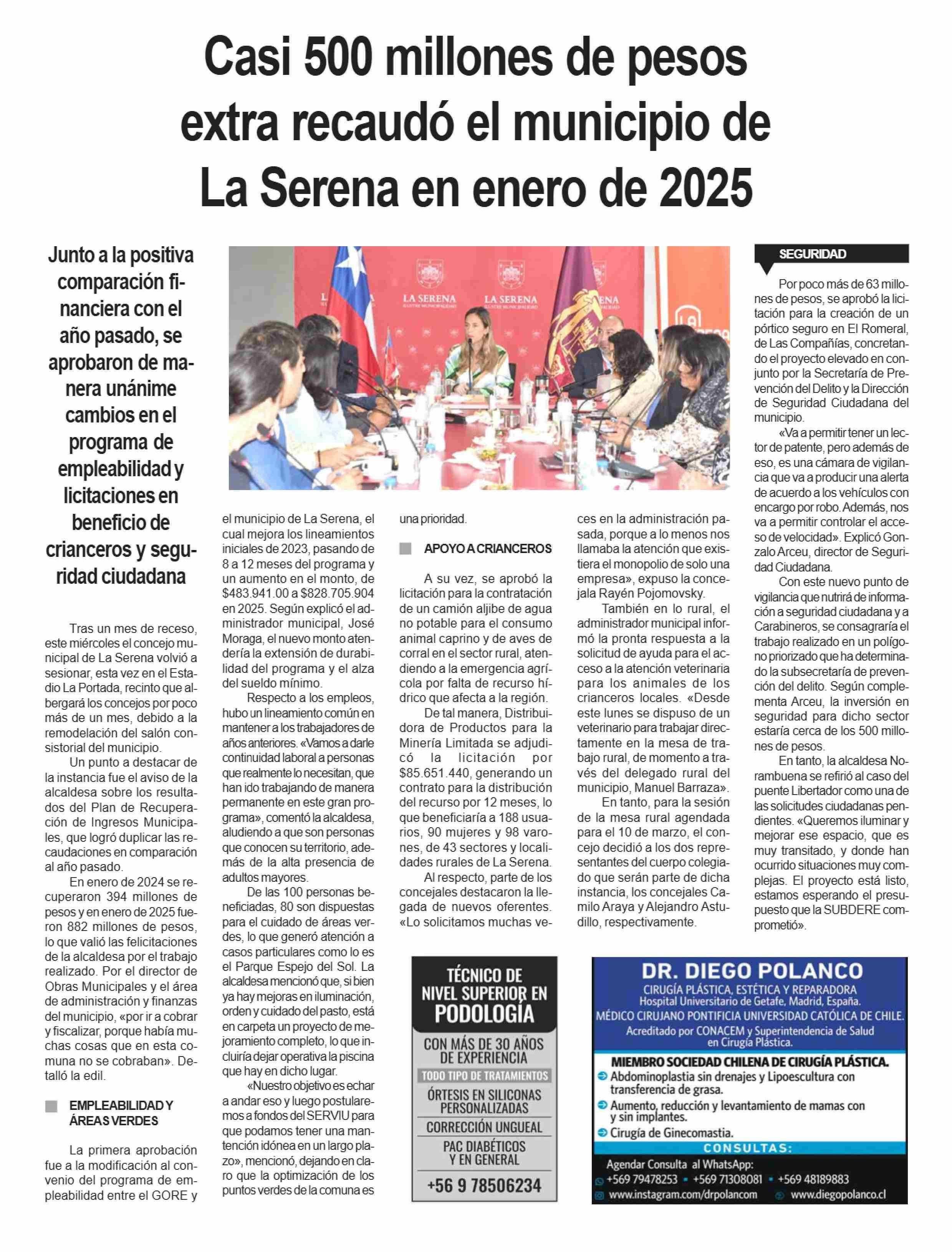 Casi 500 millones de pesos extra recaudó el municipio de La Serena en enero de 2025