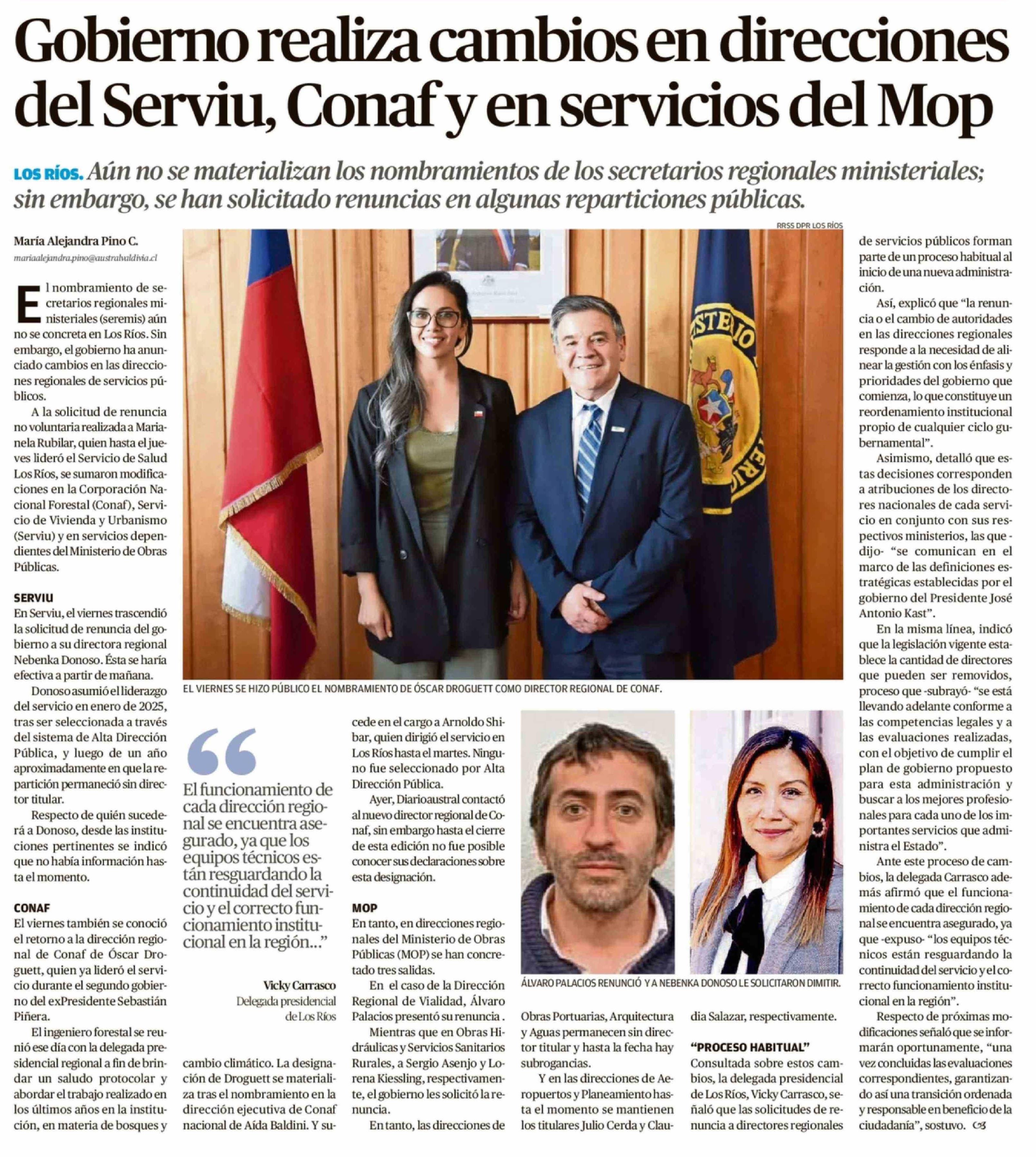 Gobierno realiza cambios en direcciones del Serviu, Conaf y en servicios del Mop