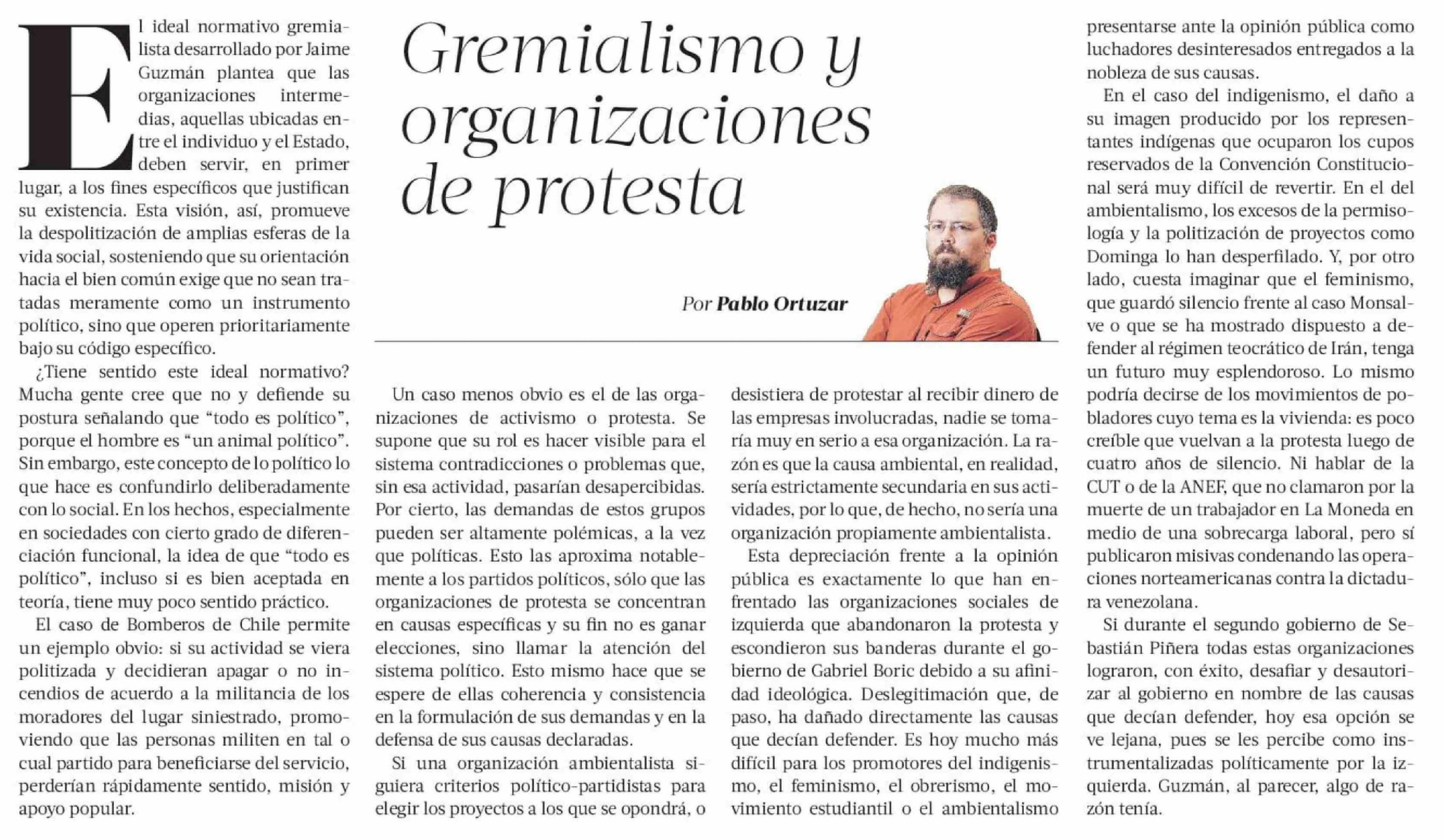 Columnas de Opinión: Gremialismo y organizaciones de protesta