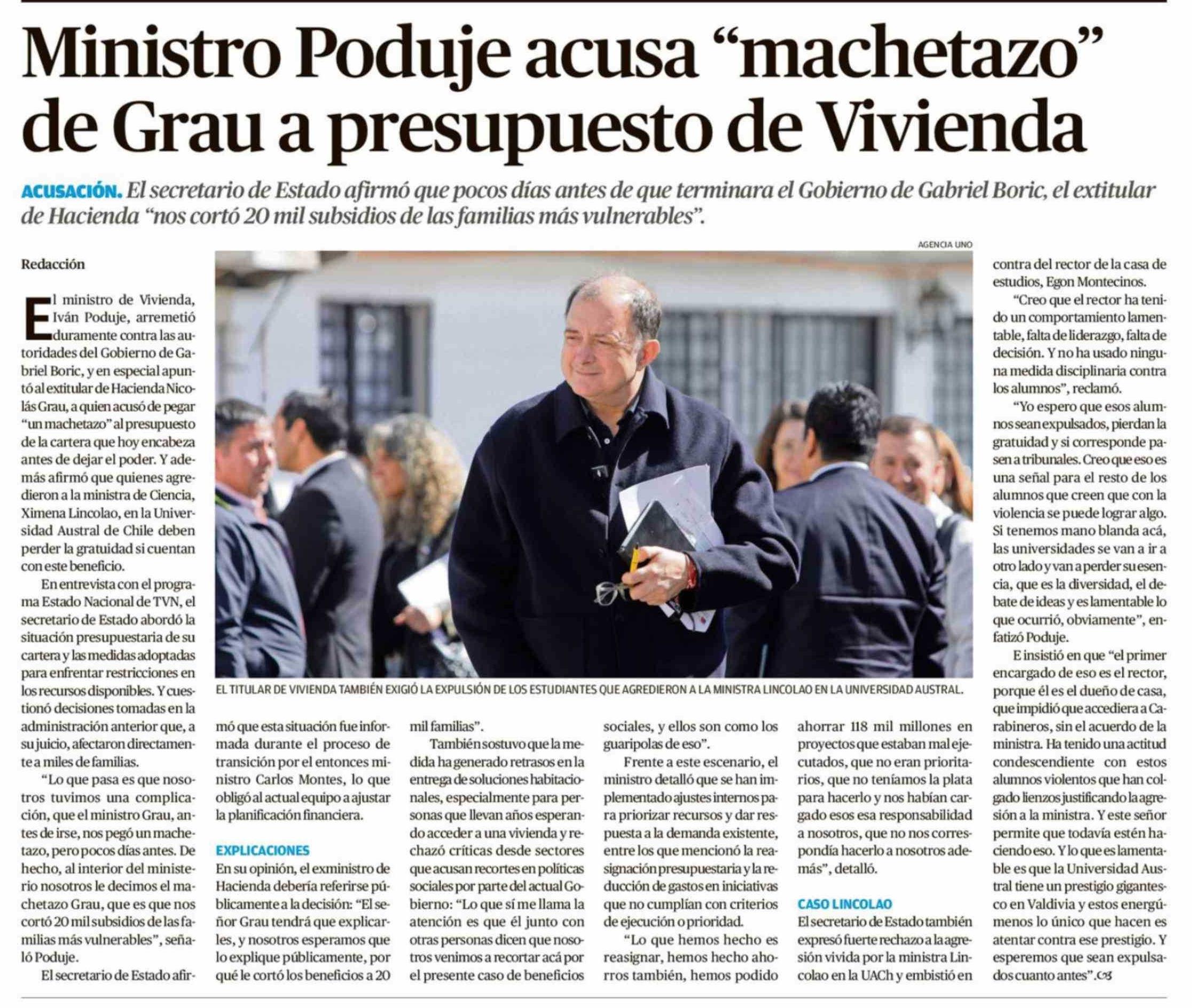 Ministro Poduje acusa "machetazo" de Grau a presupuesto de Vivienda