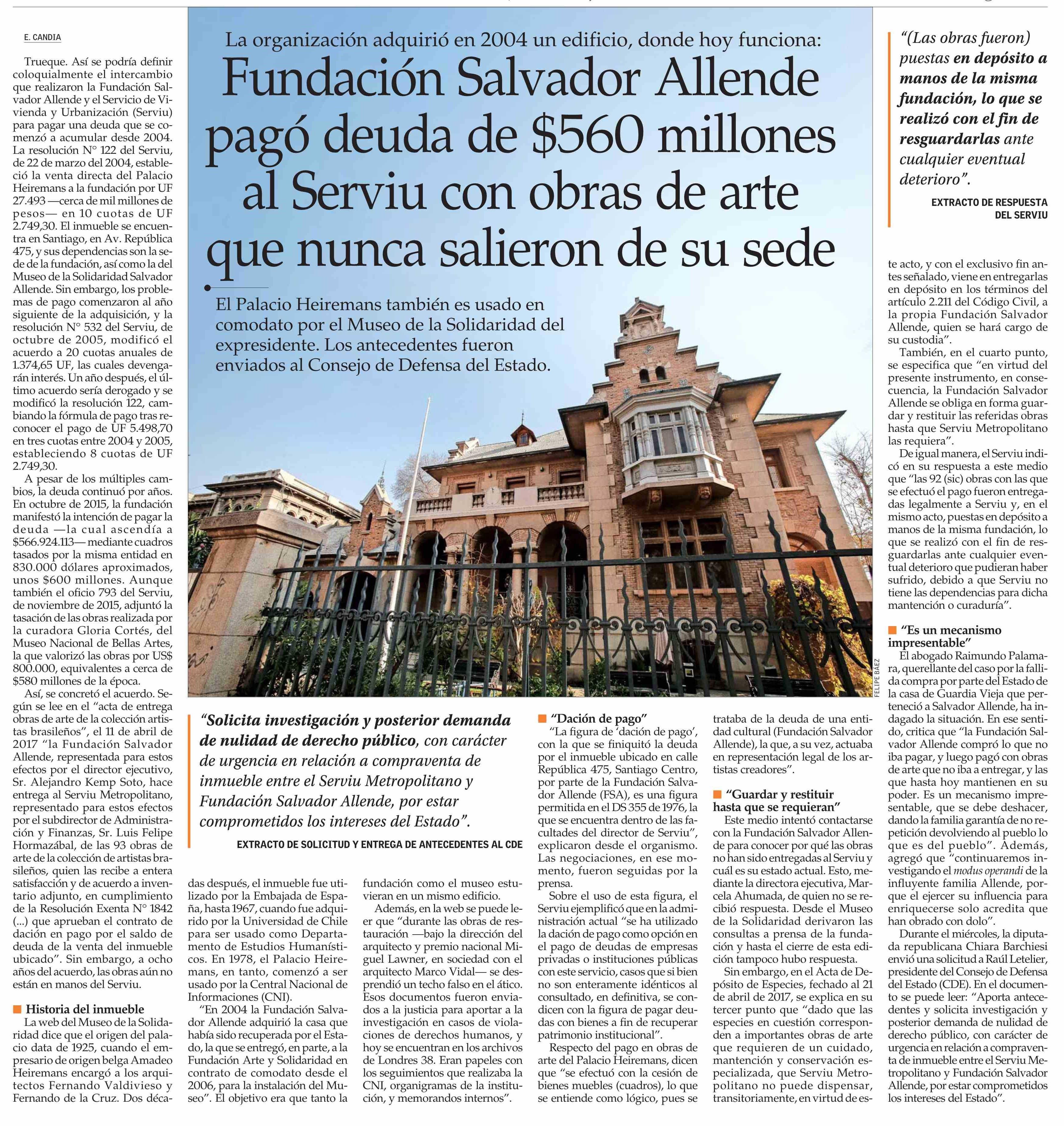 Fundación Salvador Allende pagó deuda de $560 millones al Serviu con obras de arte que nunca salieron de su sede