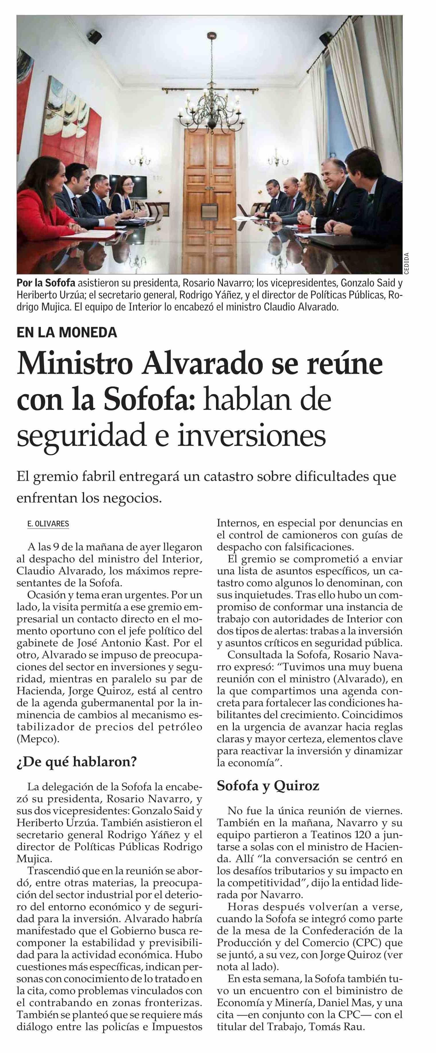 Ministro Alvarado se reúne con la Sofofa: hablan de seguridad e inversiones