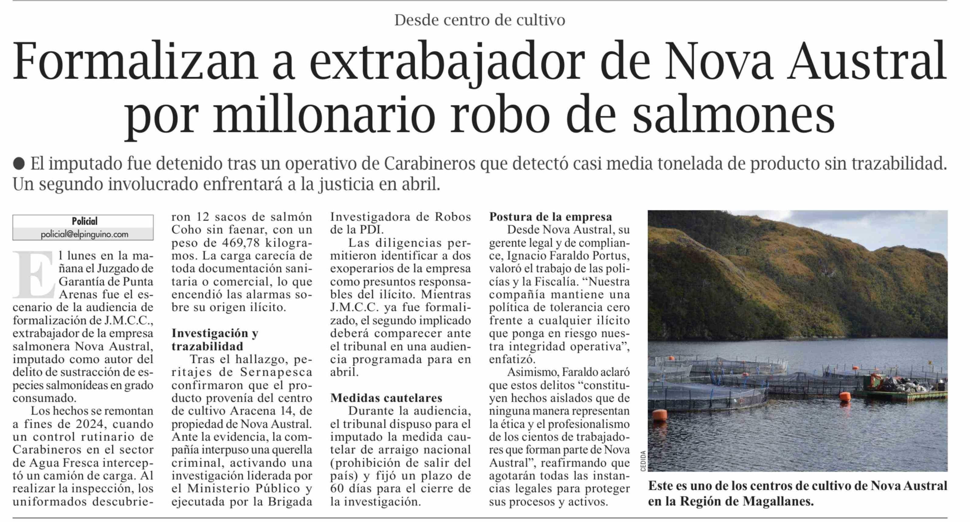 Formalizan a extrabajador de Nova Austral por millonario robo de salmones