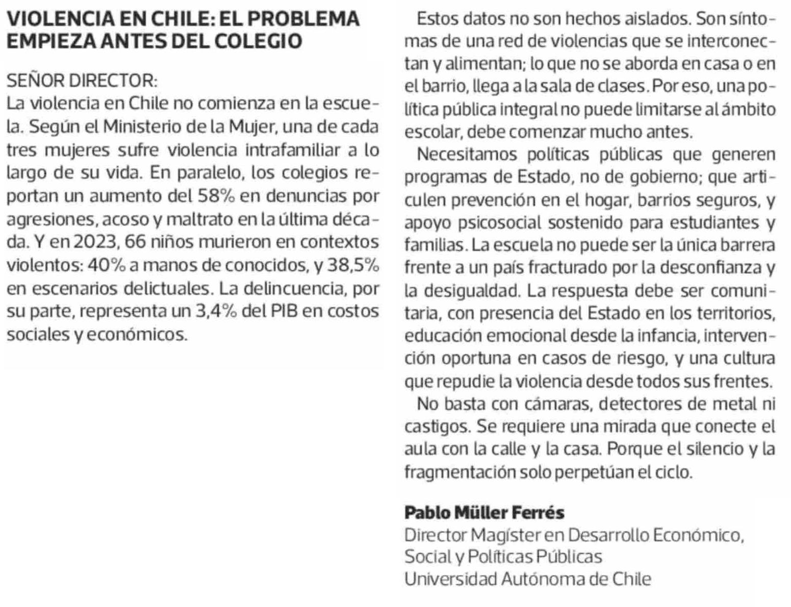 CARTAS: VIOLENCIA EN CHILE: EL PROBLEMA EMPIEZA ANTES DEL COLEGIO
