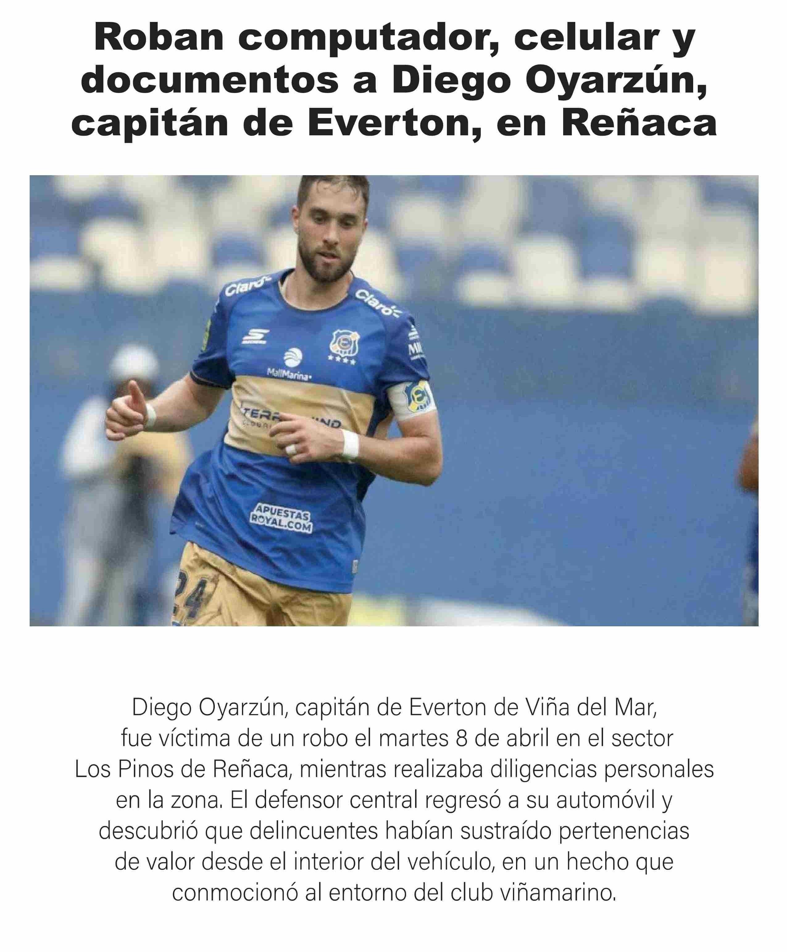 | Título: | Roban computador, celular y documentos a Diego Oyarzún, capitán de Everton, en Reñaca |