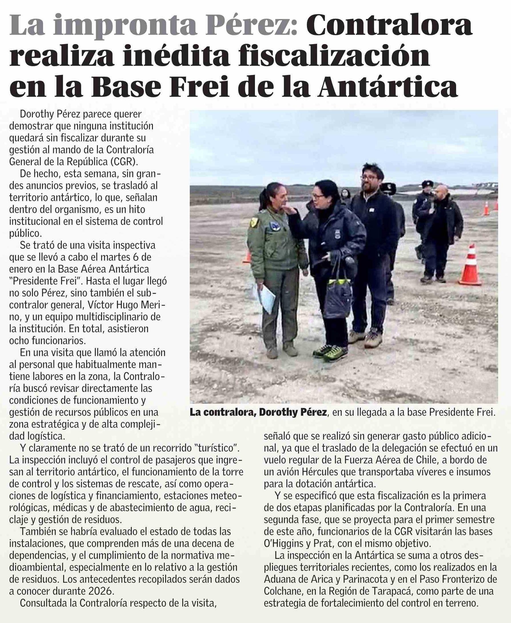 La impronta Pérez: Contralora realiza inédita fiscalización en la Base Frei de la Antártica
