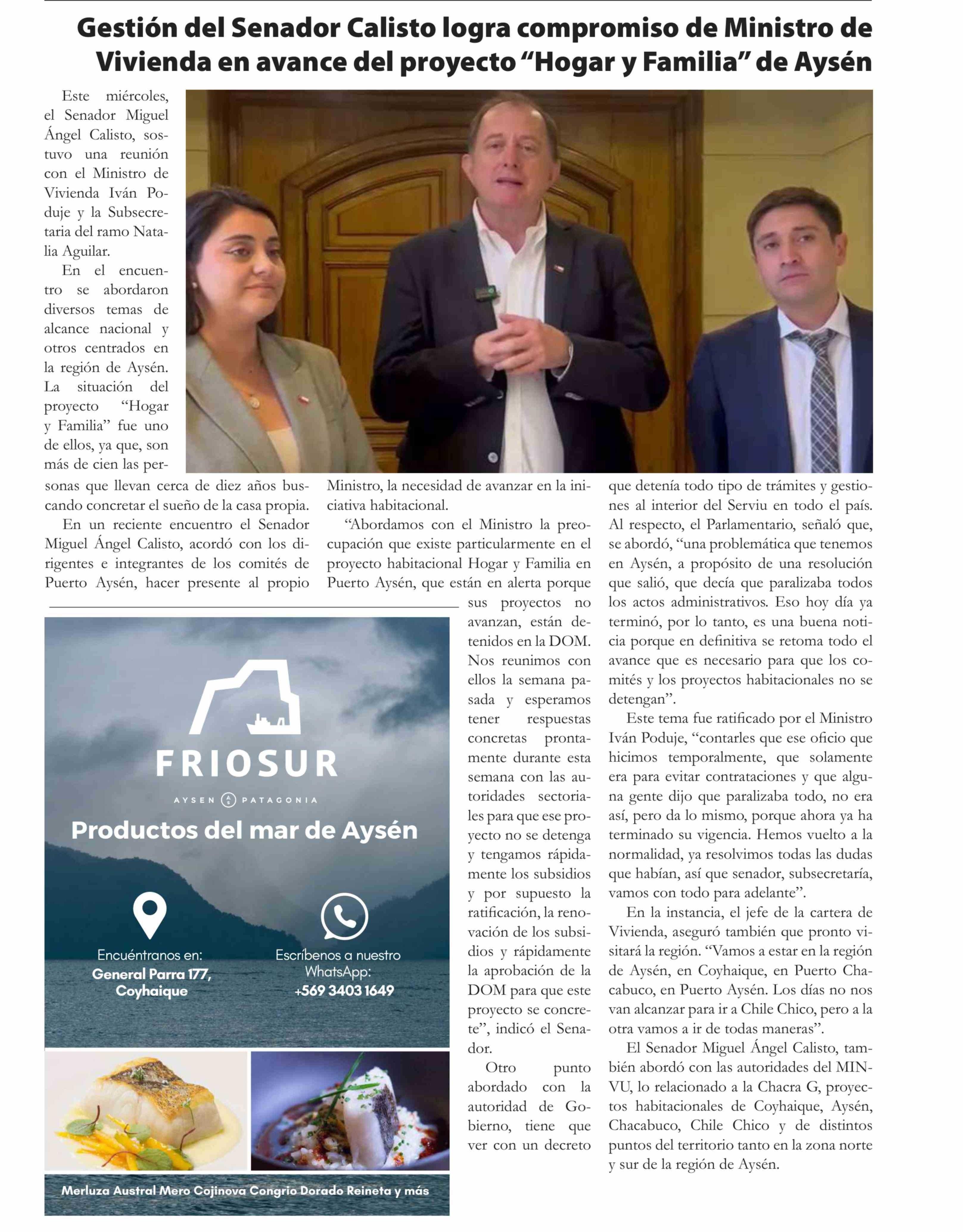 Gestión del Senador Calisto logra compromiso de Ministro de Vivienda en avance del proyecto “Hogar y Familia” de Aysén