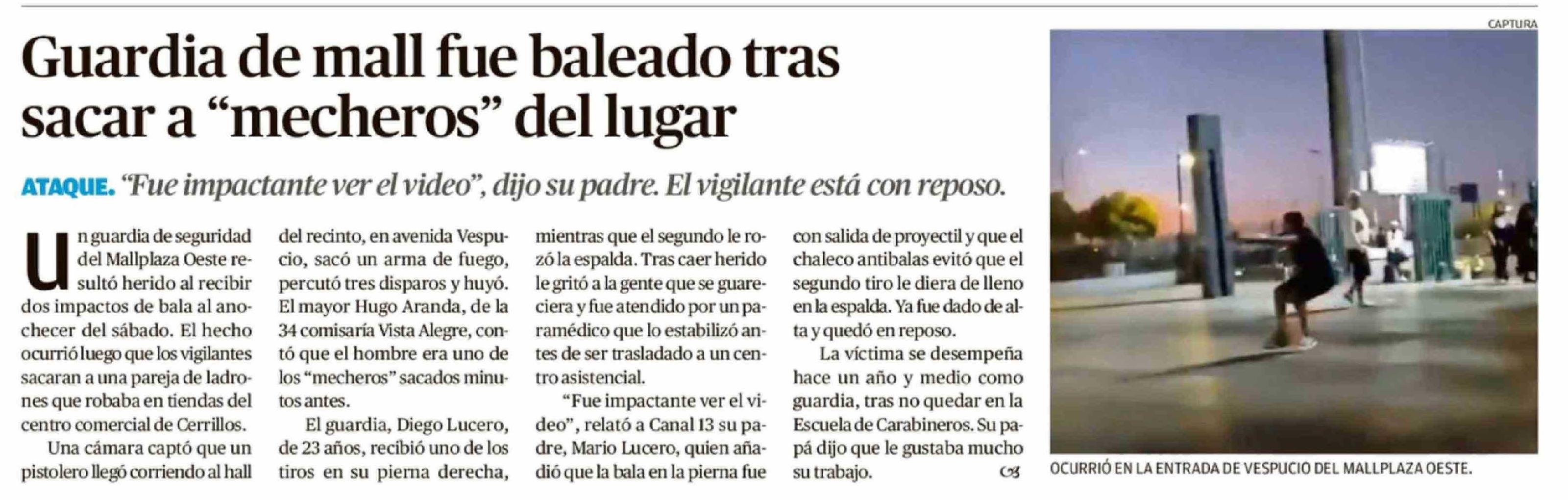Guardia de mall fue baleado tras sacar a "mecheros" del lugar