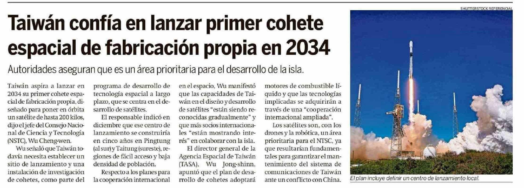 Taiwán confía en lanzar primer cohete espacial de fabricación propia en 2034