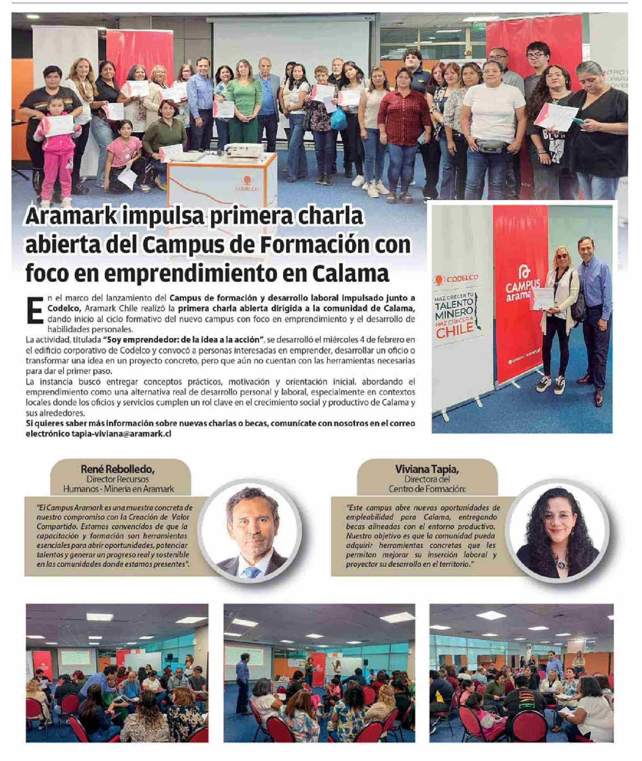 Aramark impulsa primera charla abierta del Campus de Formación con foco en emprendimiento en Calama