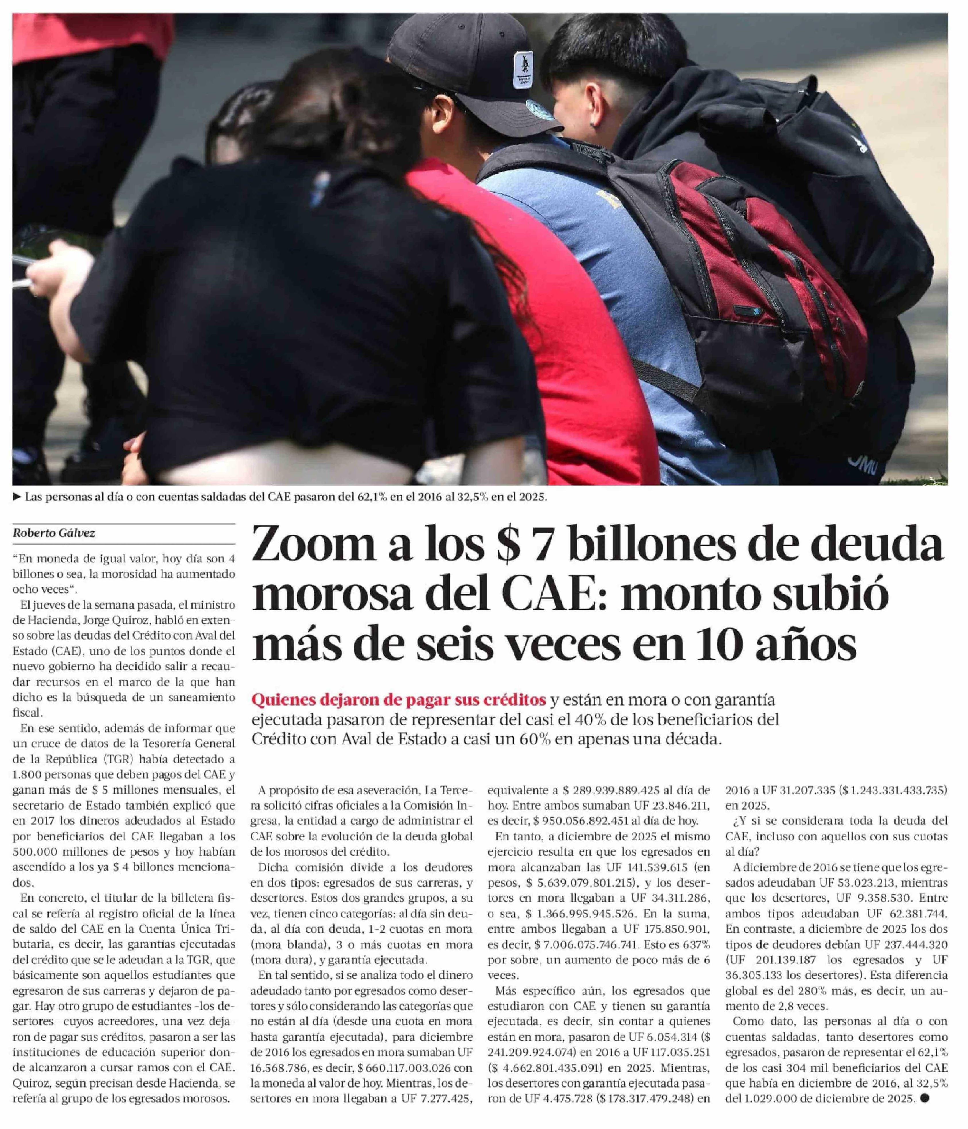 Título: Zoom a los $ 7 billones de deuda morosa del CAE: monto subió más de seis veces en 10 años