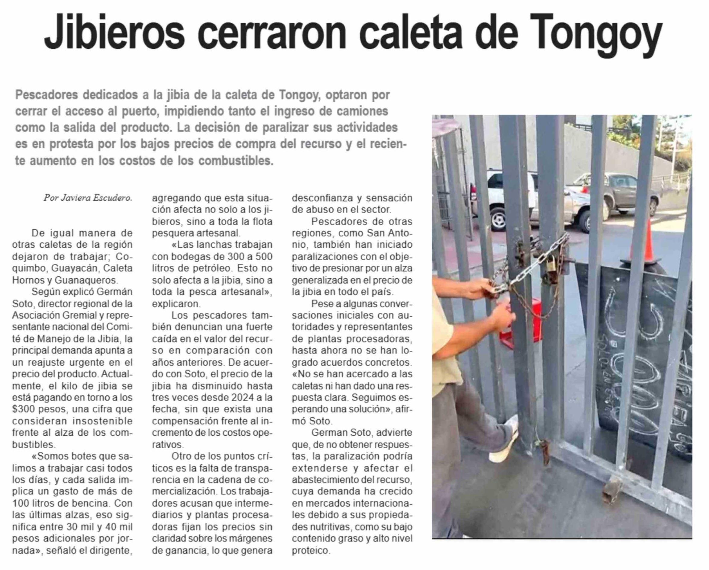 Jibieros cerraron caleta de Tongoy