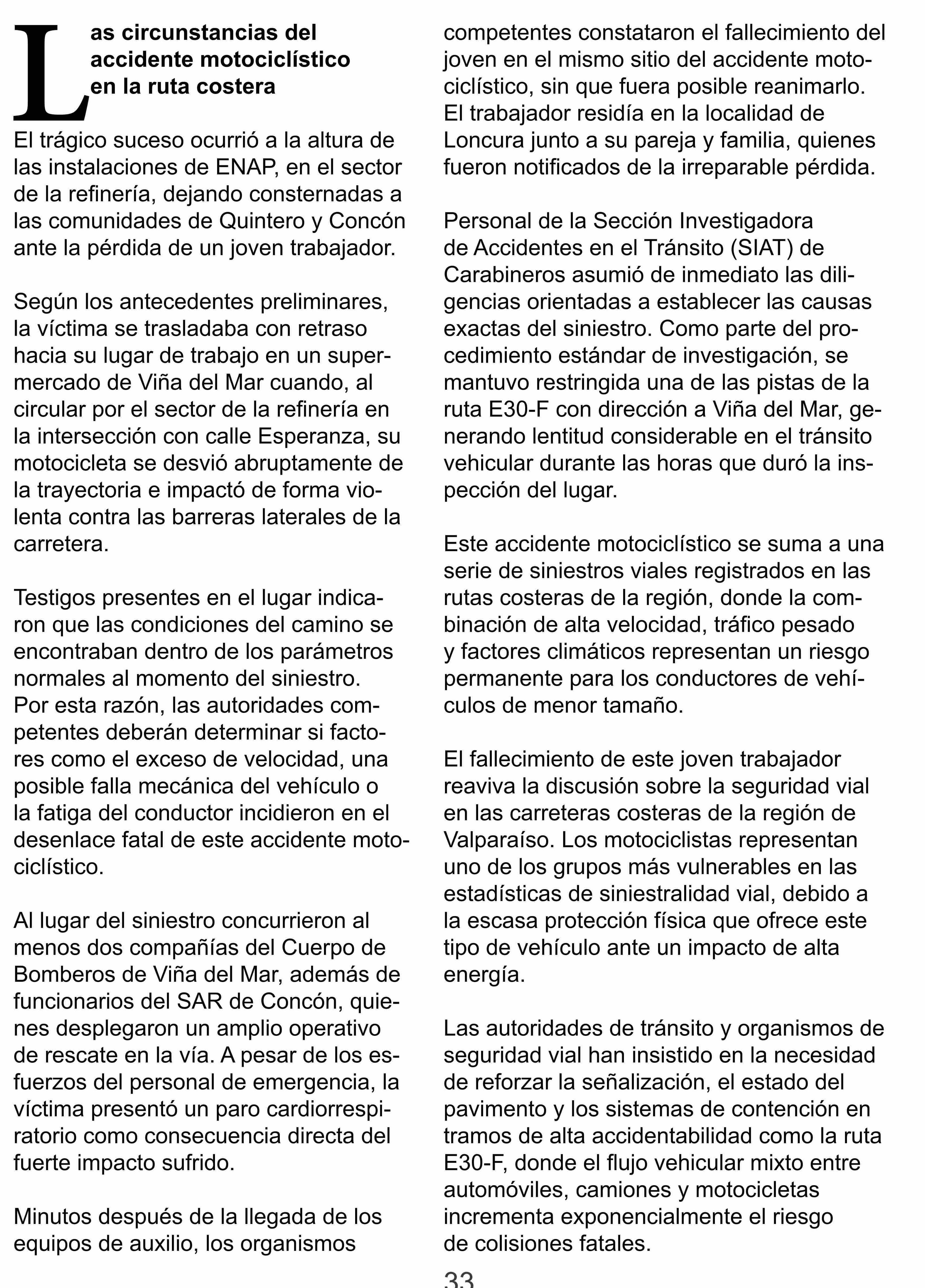 | Título: | Fatal accidente motociclístico: Joven trabajador de 24 años pierde la vida en ruta de Concón |