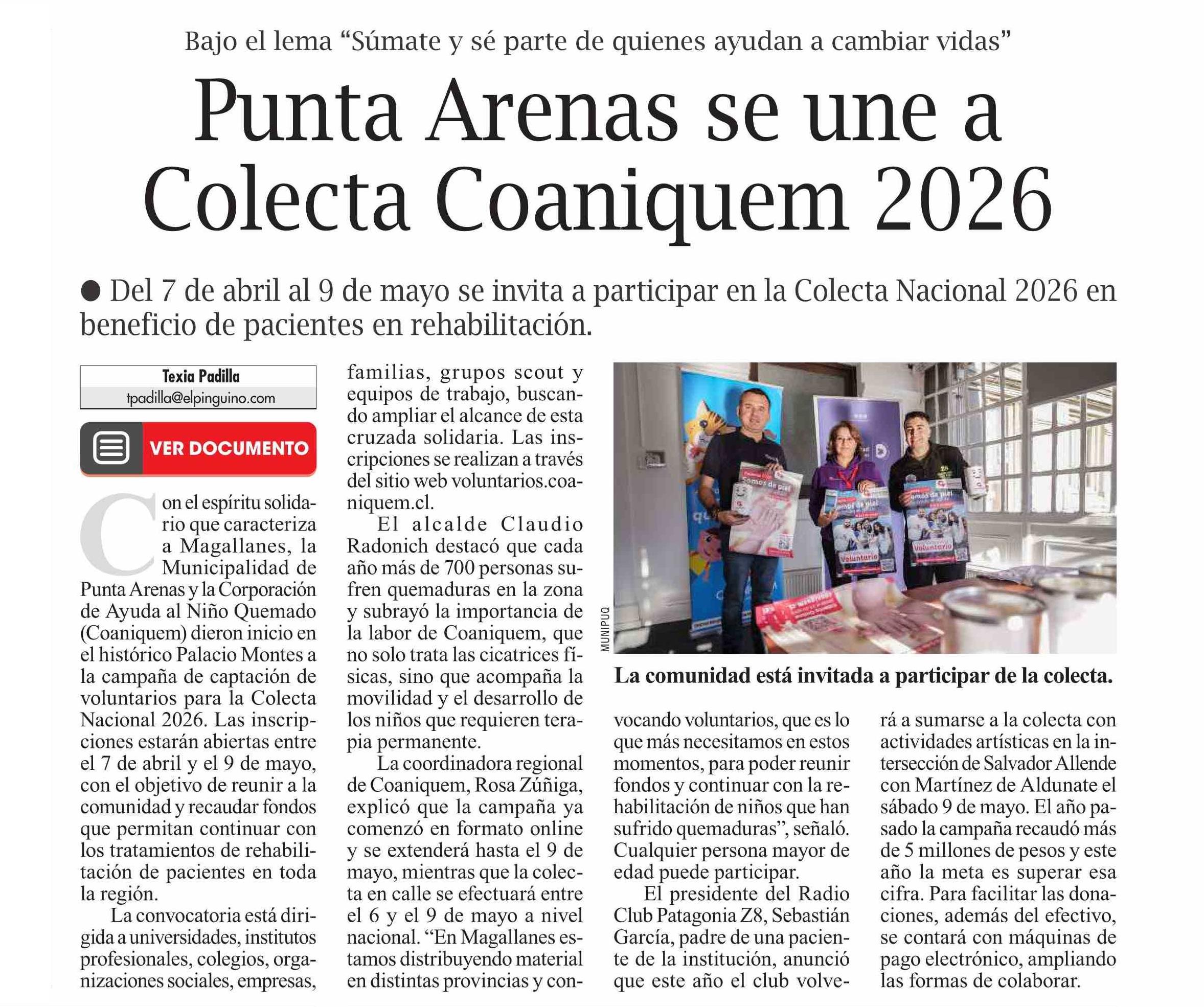 Título: Punta Arenas se une a Colecta Coaniquem 2026