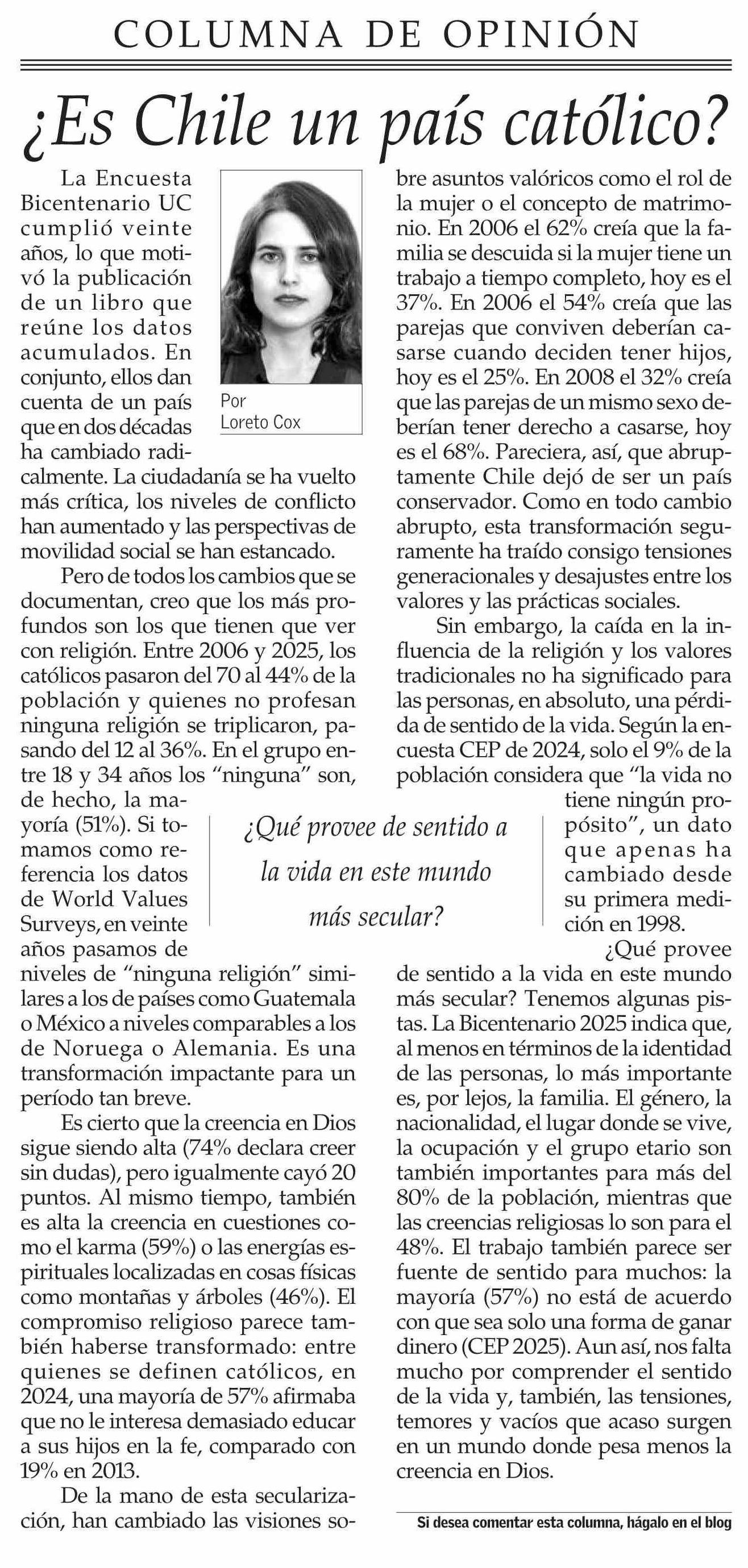 Título: Columnas de Opinión: ¿Es Chile un país católico?