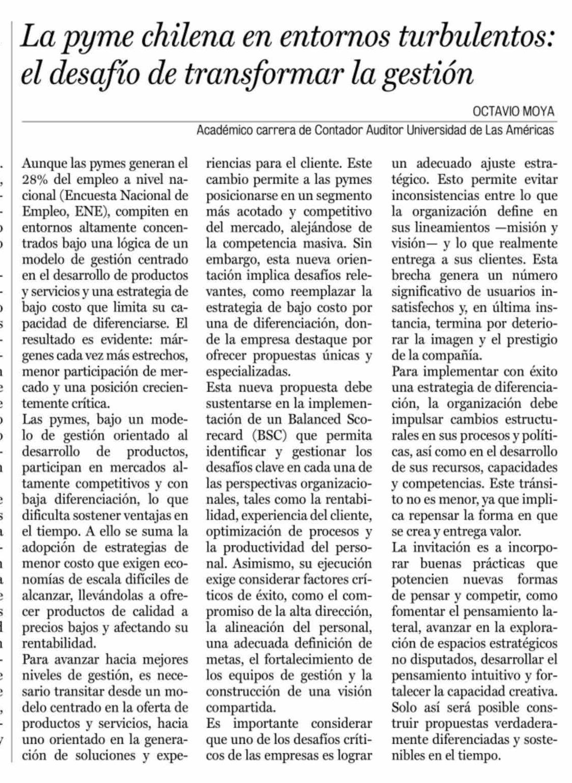 Columnas de Opinión: La pyme chilena en entornos turbulentos: el desafío de transformar la gestión