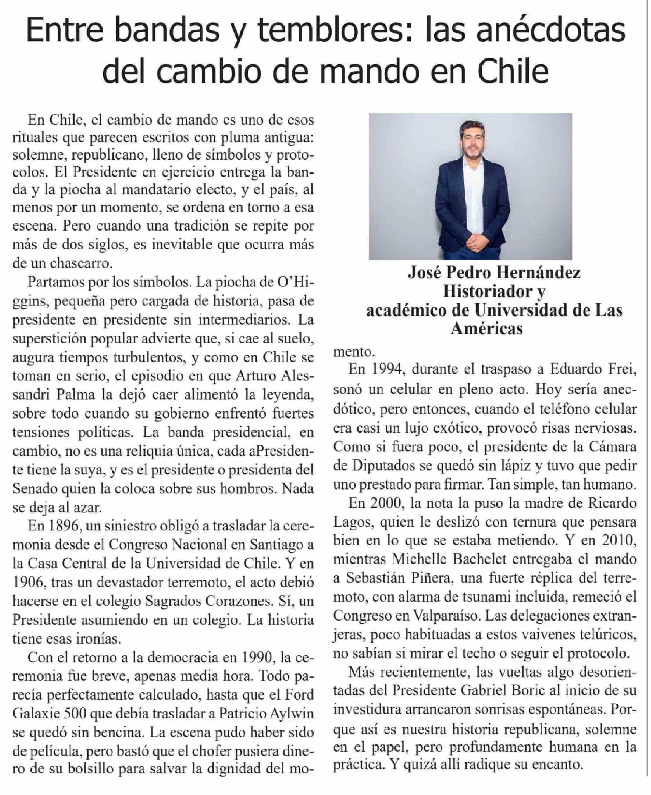Columnas de Opinión: Entre bandas y temblores: las anécdotas del cambio de mando en Chile