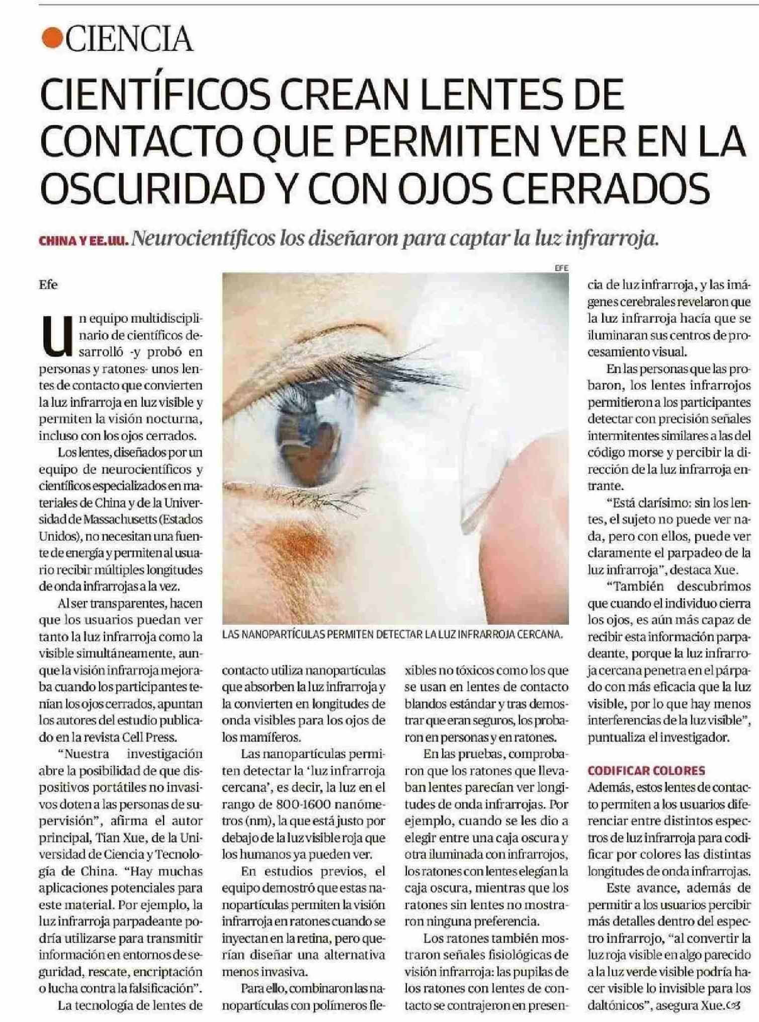 CIENTÍFICOS CREAN LENTES DE CONTACTO QUE PERMITEN VER EN LA OSCURIDAD Y CON OJOS CERRADOS