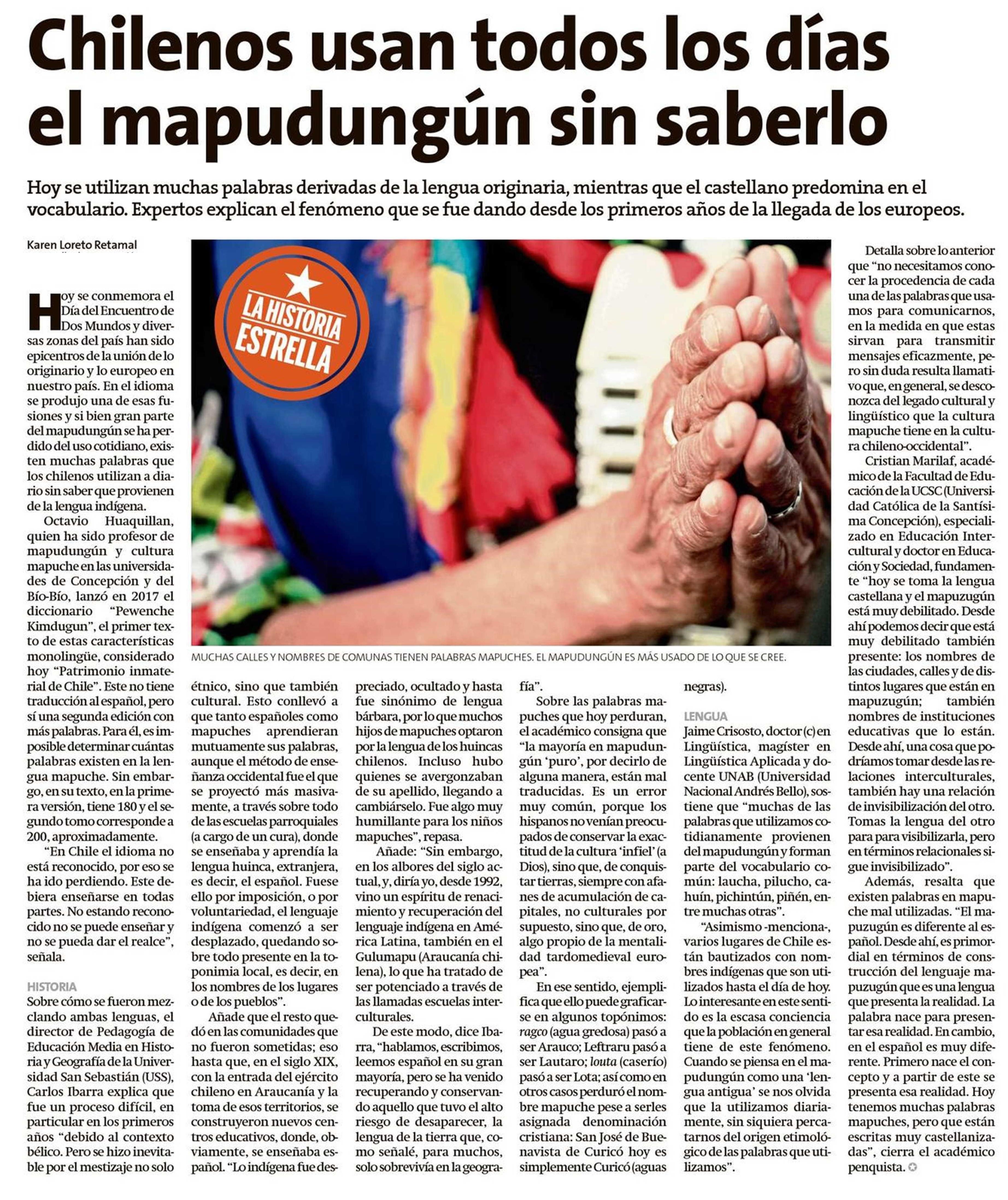 Chilenos usan todos los días el mapudungún sin saberlo