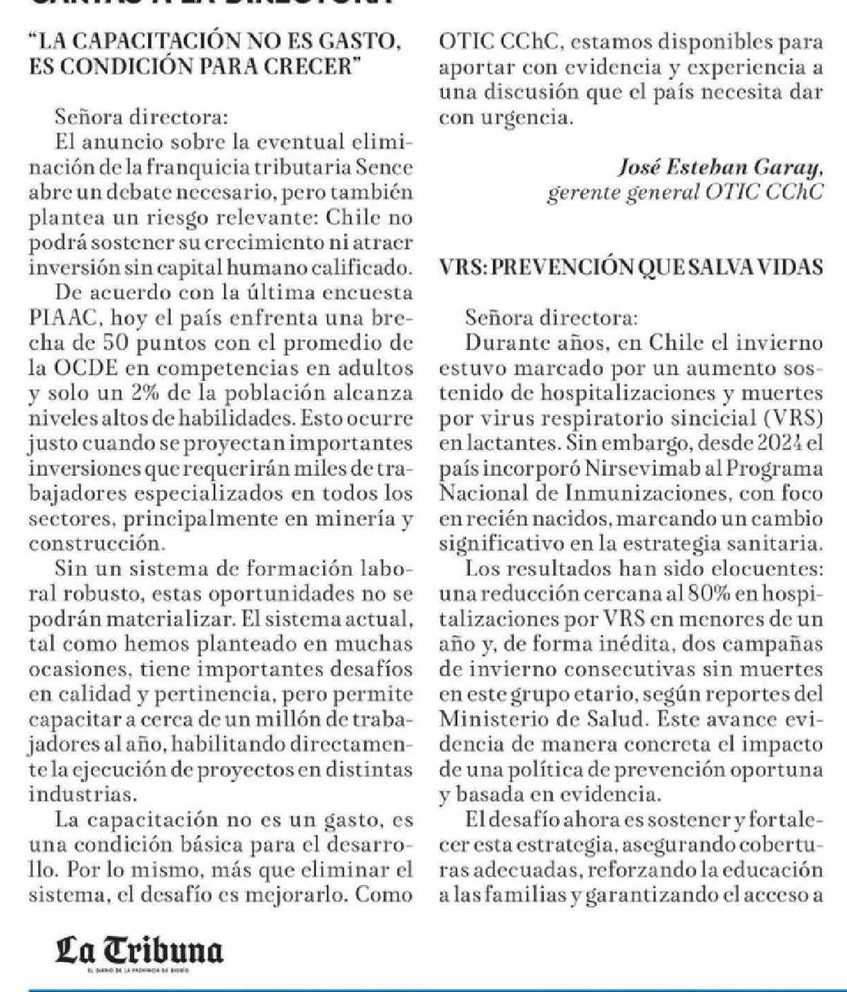 Título: Cartas: "LA CAPACITACIÓN NO ES GASTO, ES CONDICIÓN PARA CRECER"