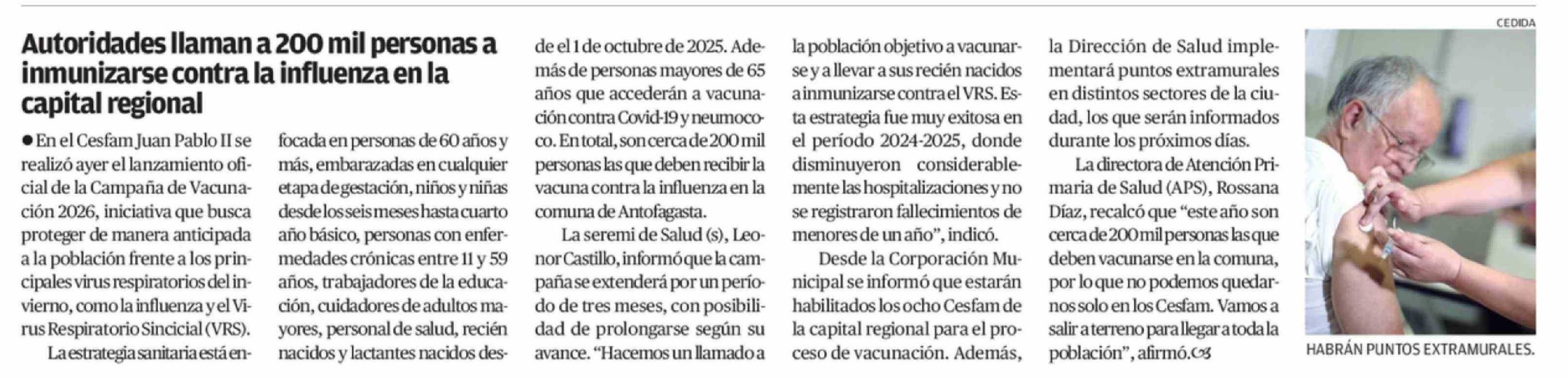 Autoridades llaman a 200 mil personas a inmunizarse contra la influenza en la capital regional