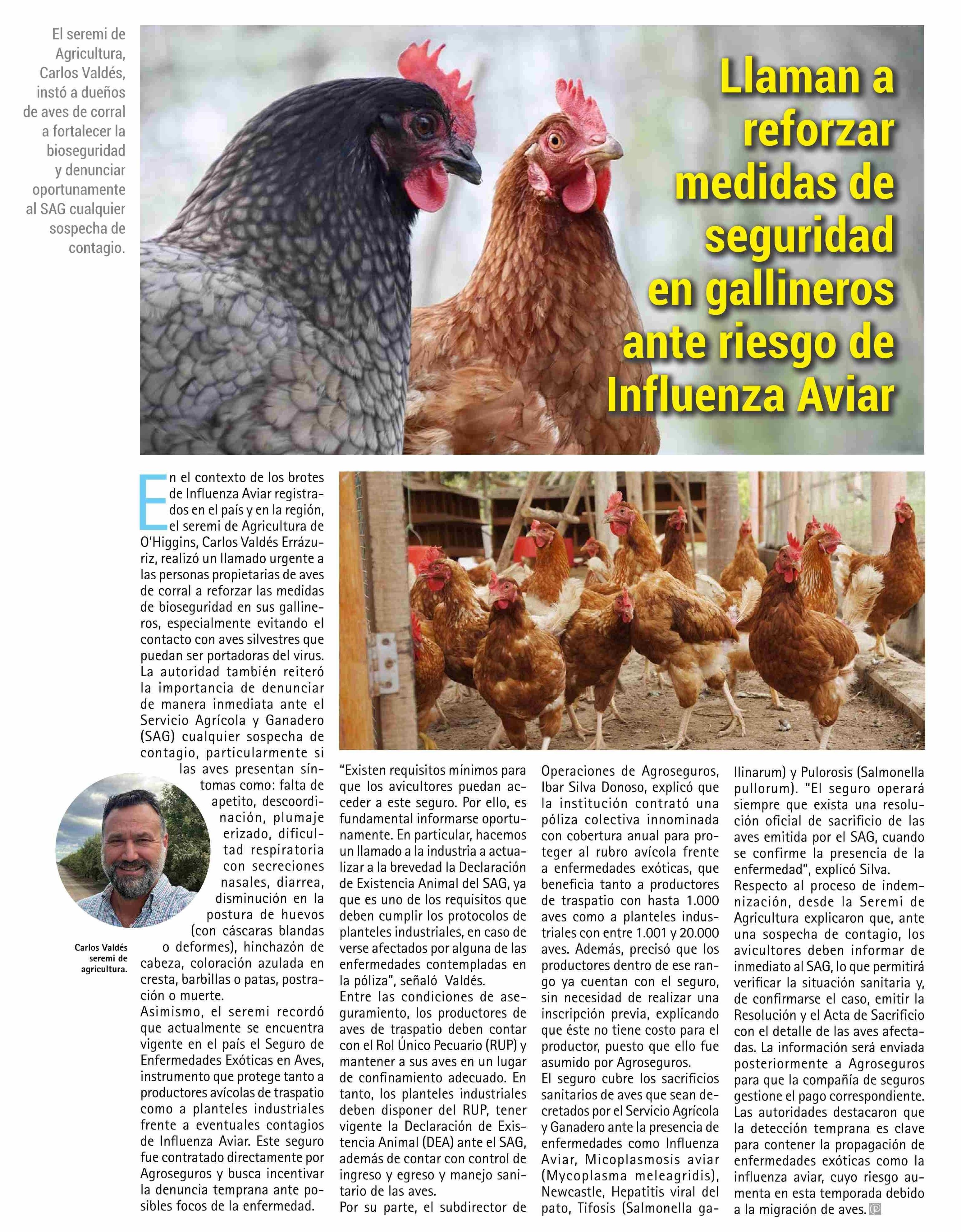 Llaman a reforzar medidas de seguridad en gallineros ante riesgo de Influenza Aviar