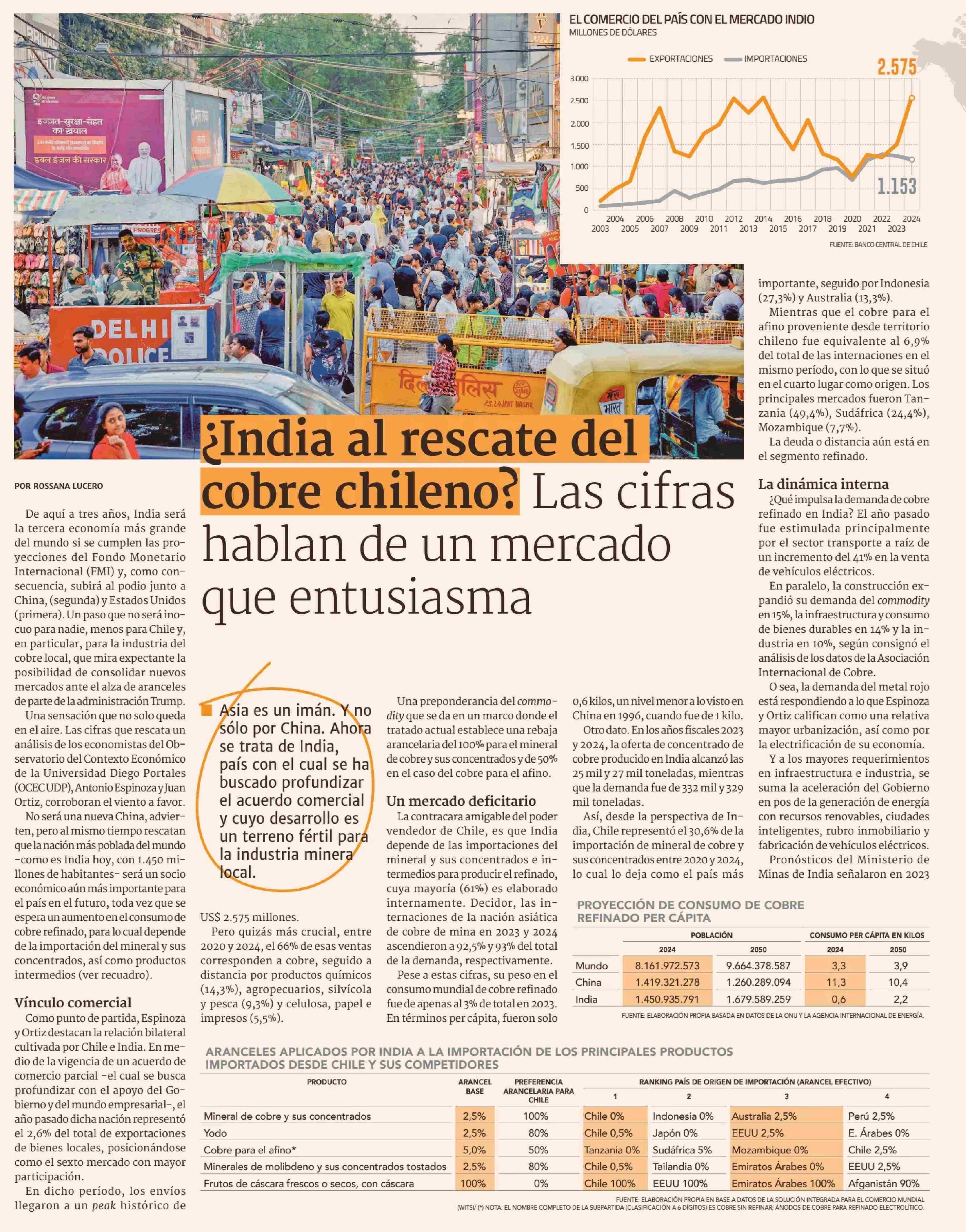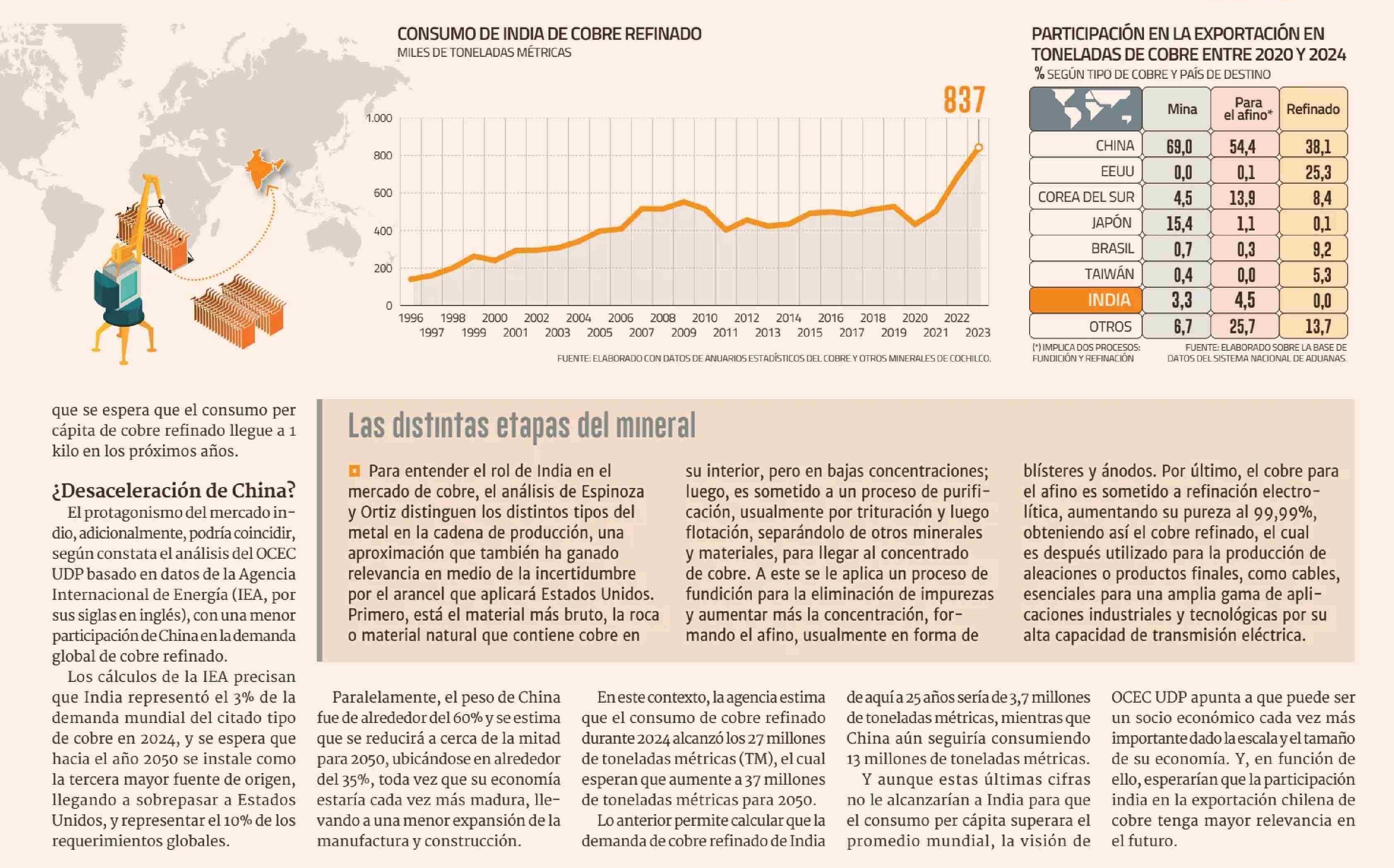 ¿India al rescate del cobre chileno? Las cifras hablan de un mercado que entusiasma