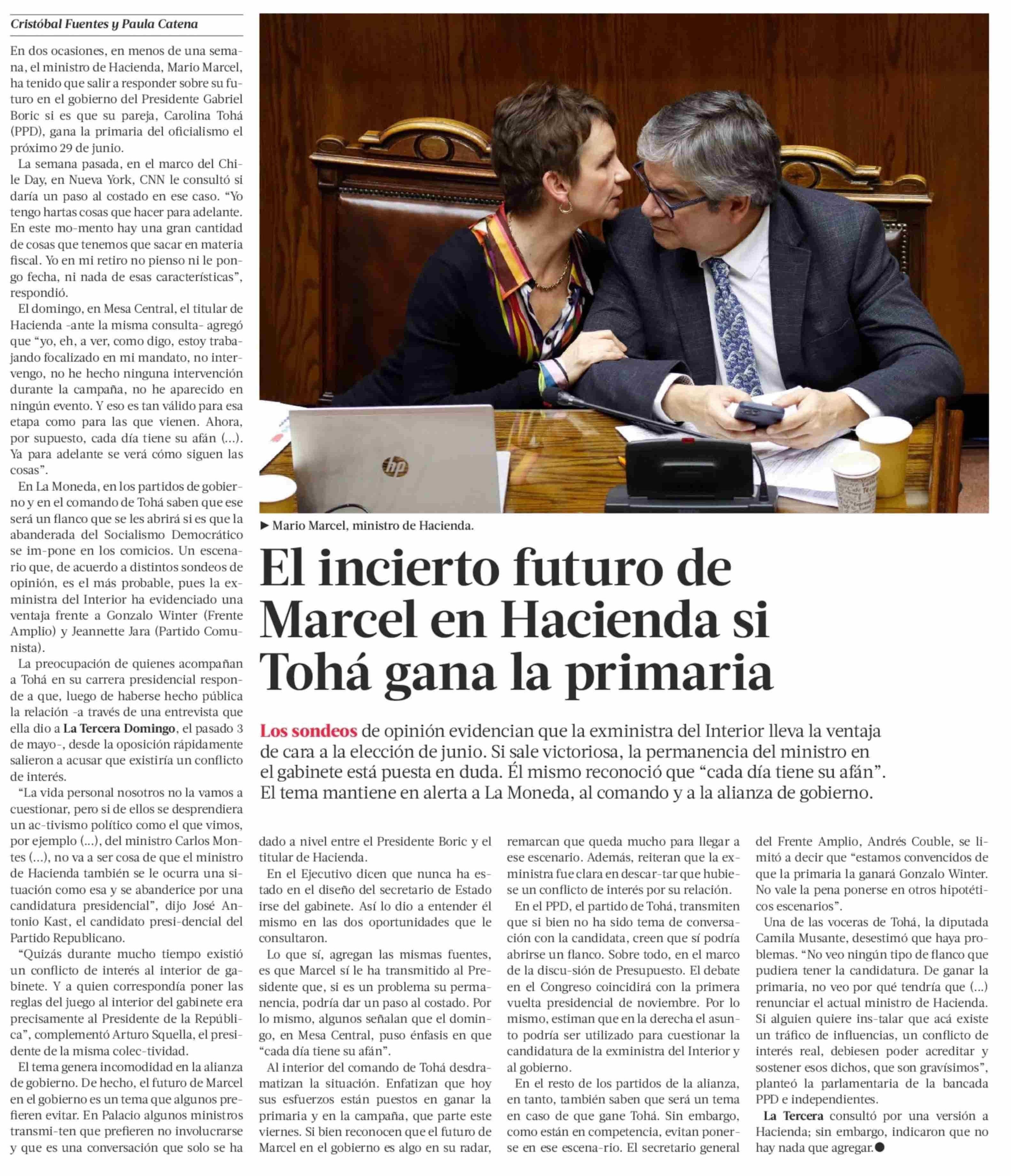 El incierto futuro de Marcel en Hacienda si Tohá gana la primaria