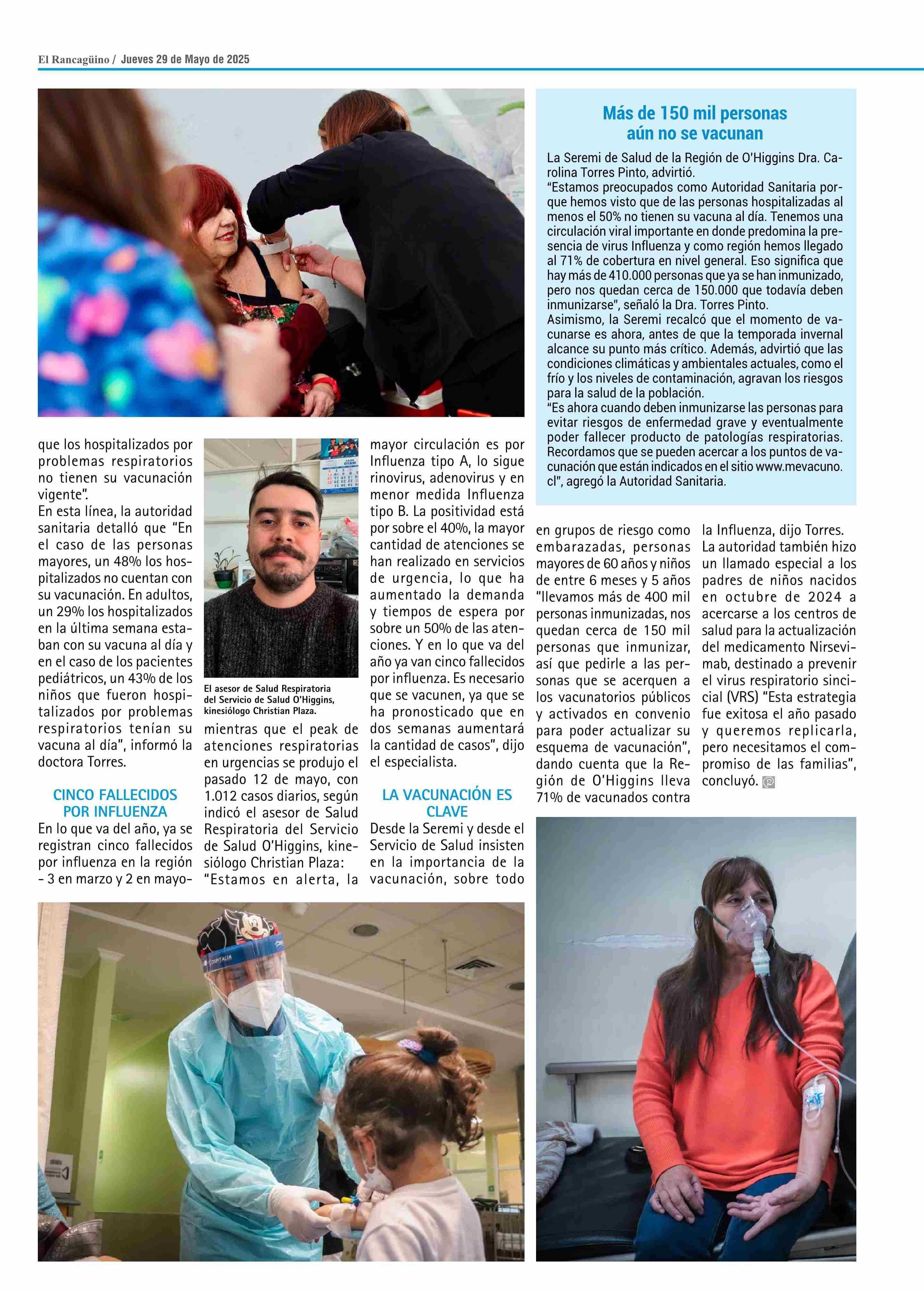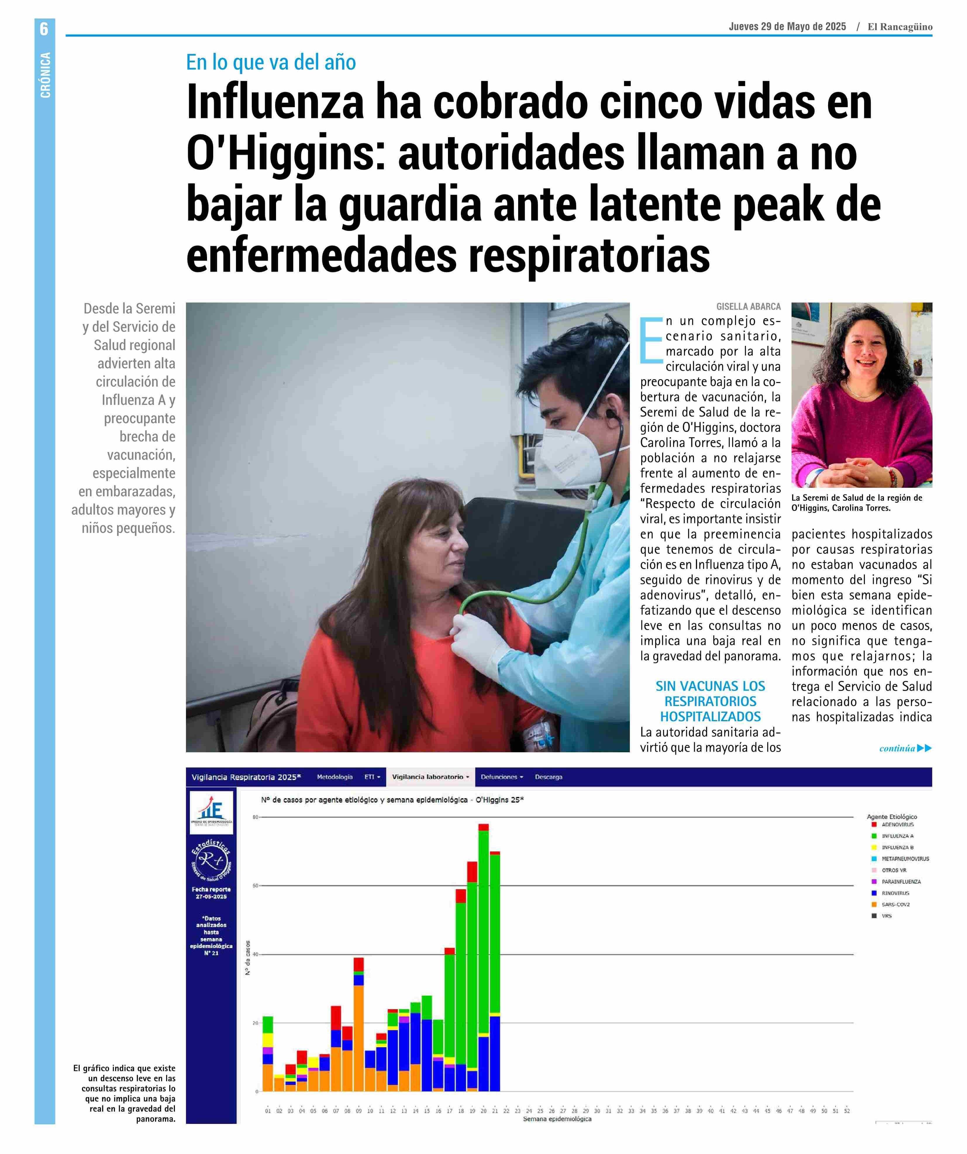 | Título: | Influenza ha cobrado cinco vidas en 0'Higgins: autoridades llaman a no bajar la guardia ante latente peak de enfermedades respiratorias |