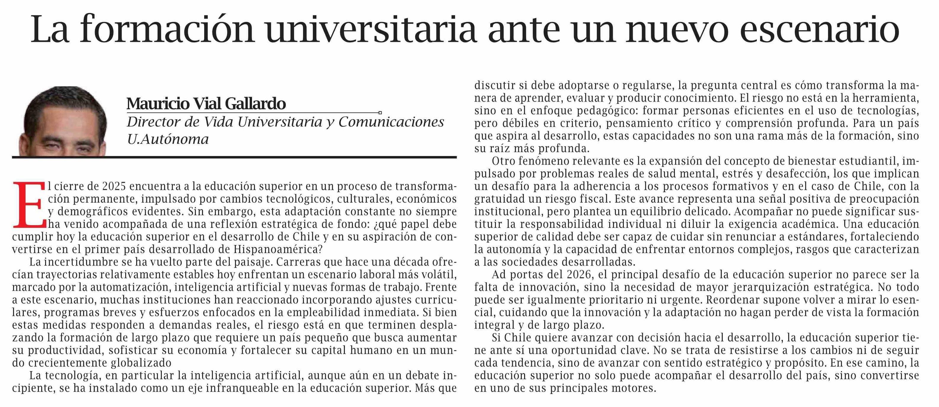 Columnas de Opinión: La formación universitaria ante un nuevo escenario