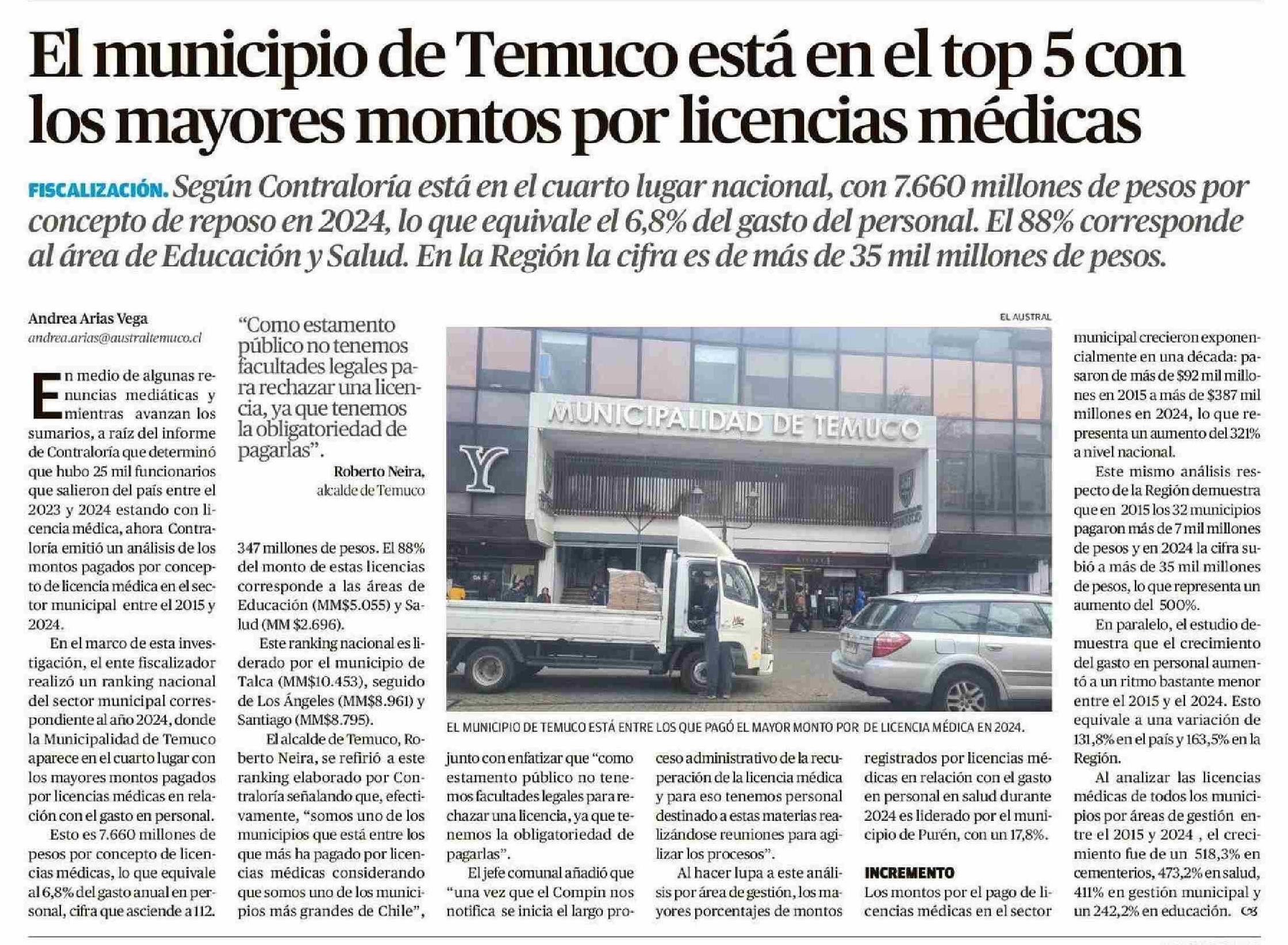 El municipio de Temuco está en el top 5 con los mayores montos por licencias médicas
