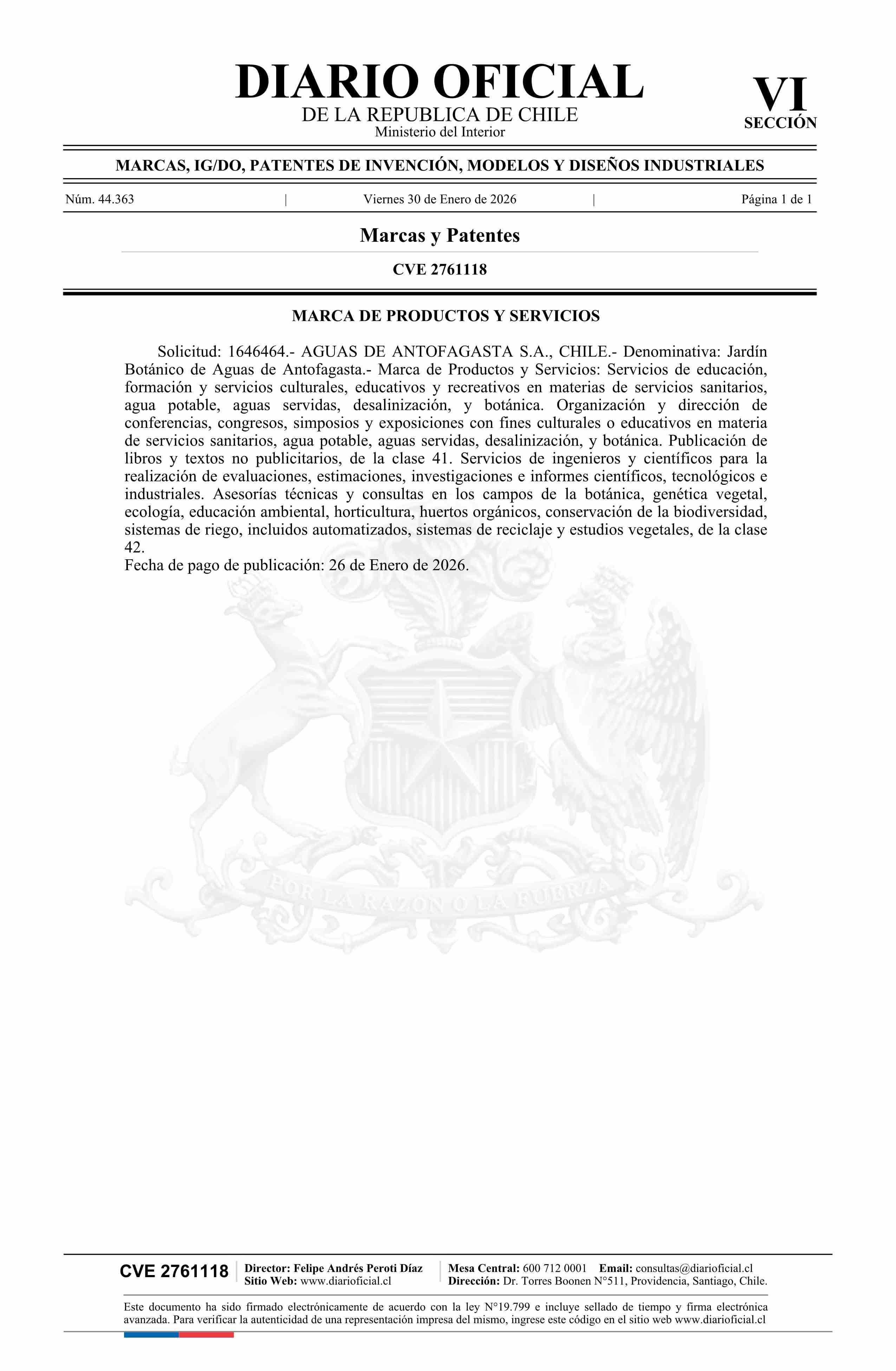 Solicitud número 1646464.- Jardín Botánico de Aguas de Antofagasta