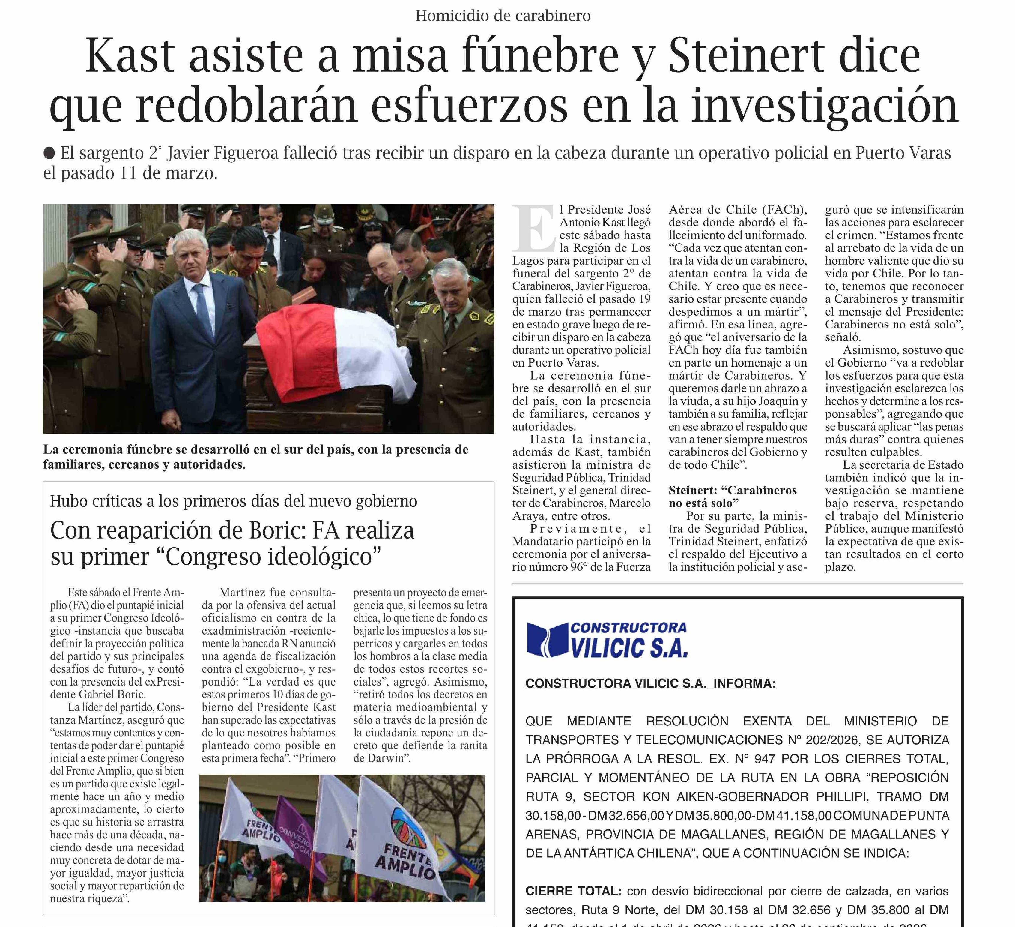 Kast asiste a misa fúnebre y Steinert dice que redoblarán esfuerzos en la investigación