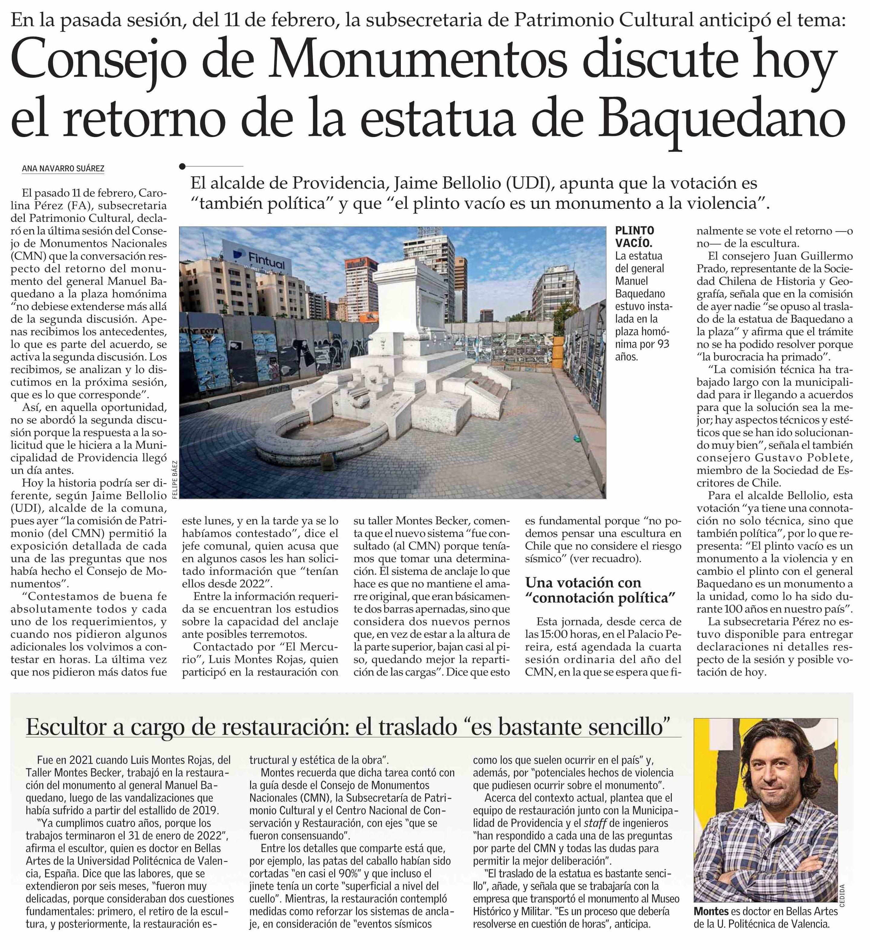 Consejo de Monumentos discute hoy el retorno de la estatua de Baquedano