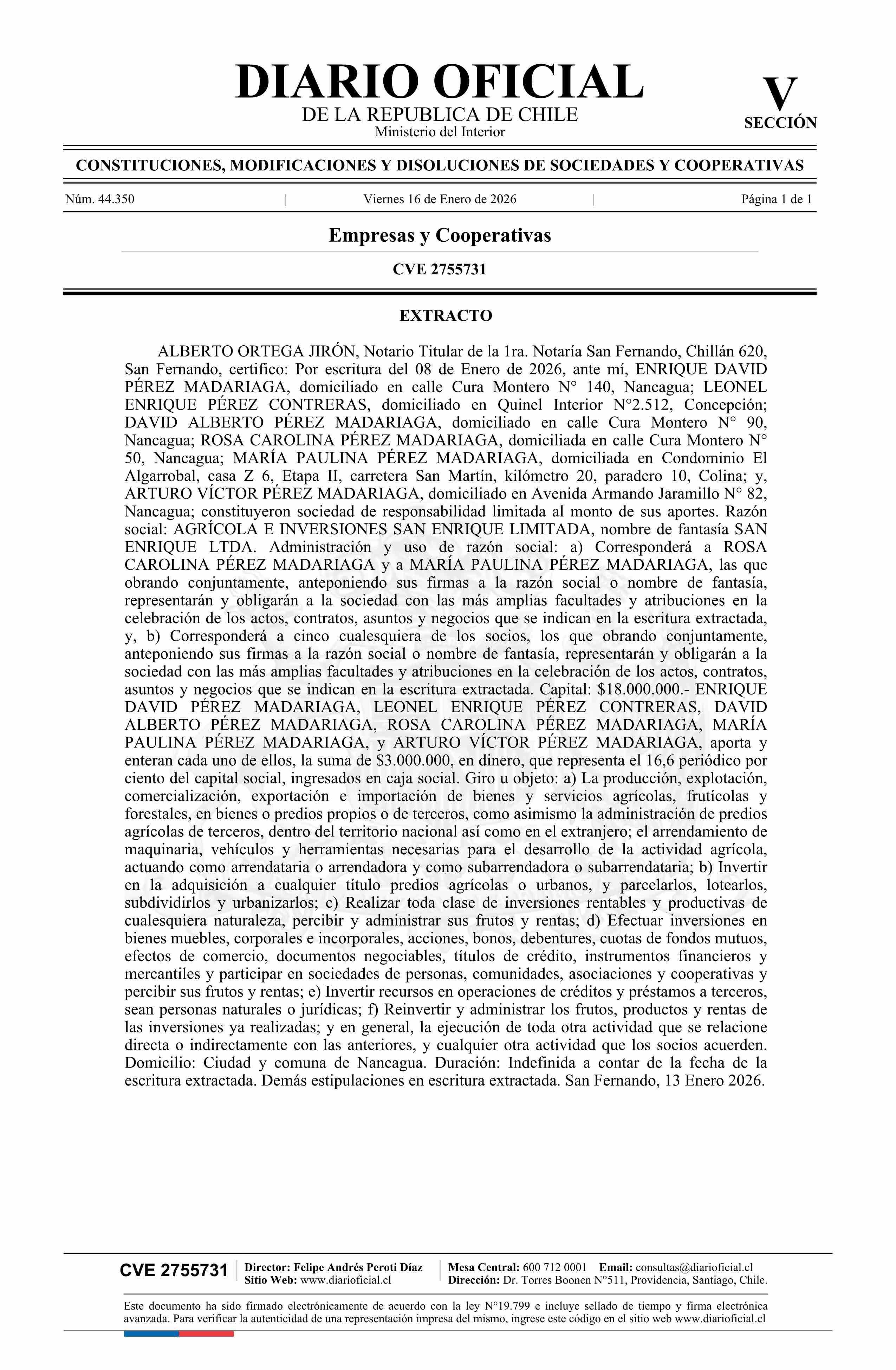 AGRÍCOLA E INVERSIONES SAN ENRIQUE LIMITADA